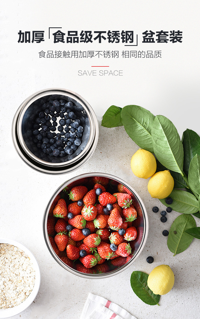 食品接触用不锈钢加厚制成,厚度均匀,抗压强度大,耐腐蚀,不生锈,卫生健康;圆润边角,光滑不刮手,特殊的收边工艺,完全不会有割手的情况出现。