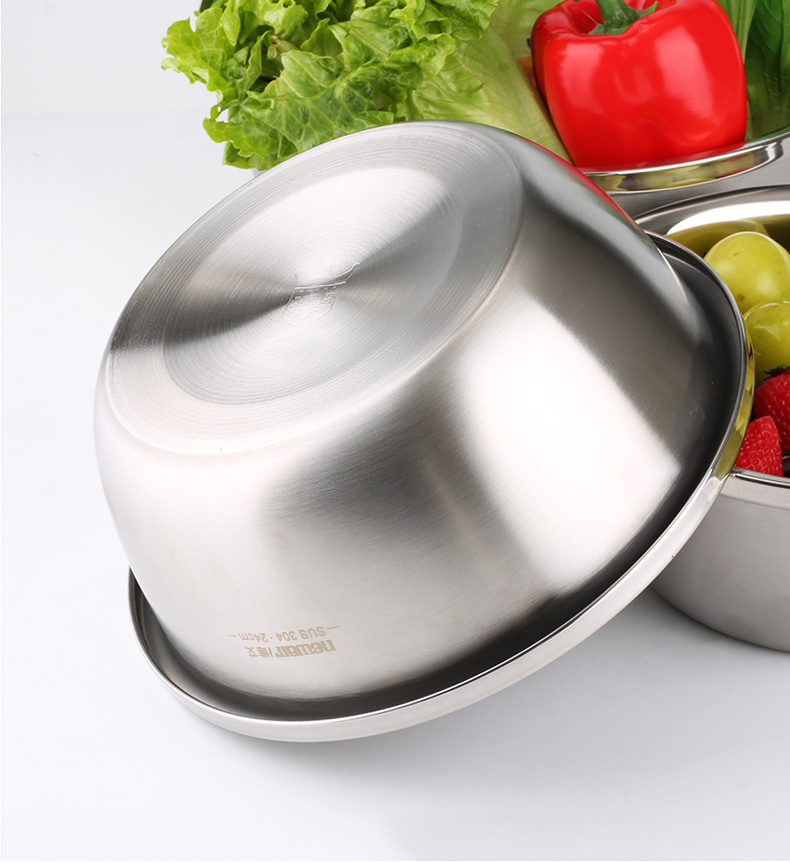 表面经过了双重精湛拉丝工艺,闪亮有质感;各盆的直径不同,可套盆,易于摆放;锅底可直接在电磁炉上加热,可当调料盆、洗米盆、洗菜洗水果盆、面盆,面盆等,整体是嵌套设计,易于摆放,大大小小五件套满足厨房所需!
