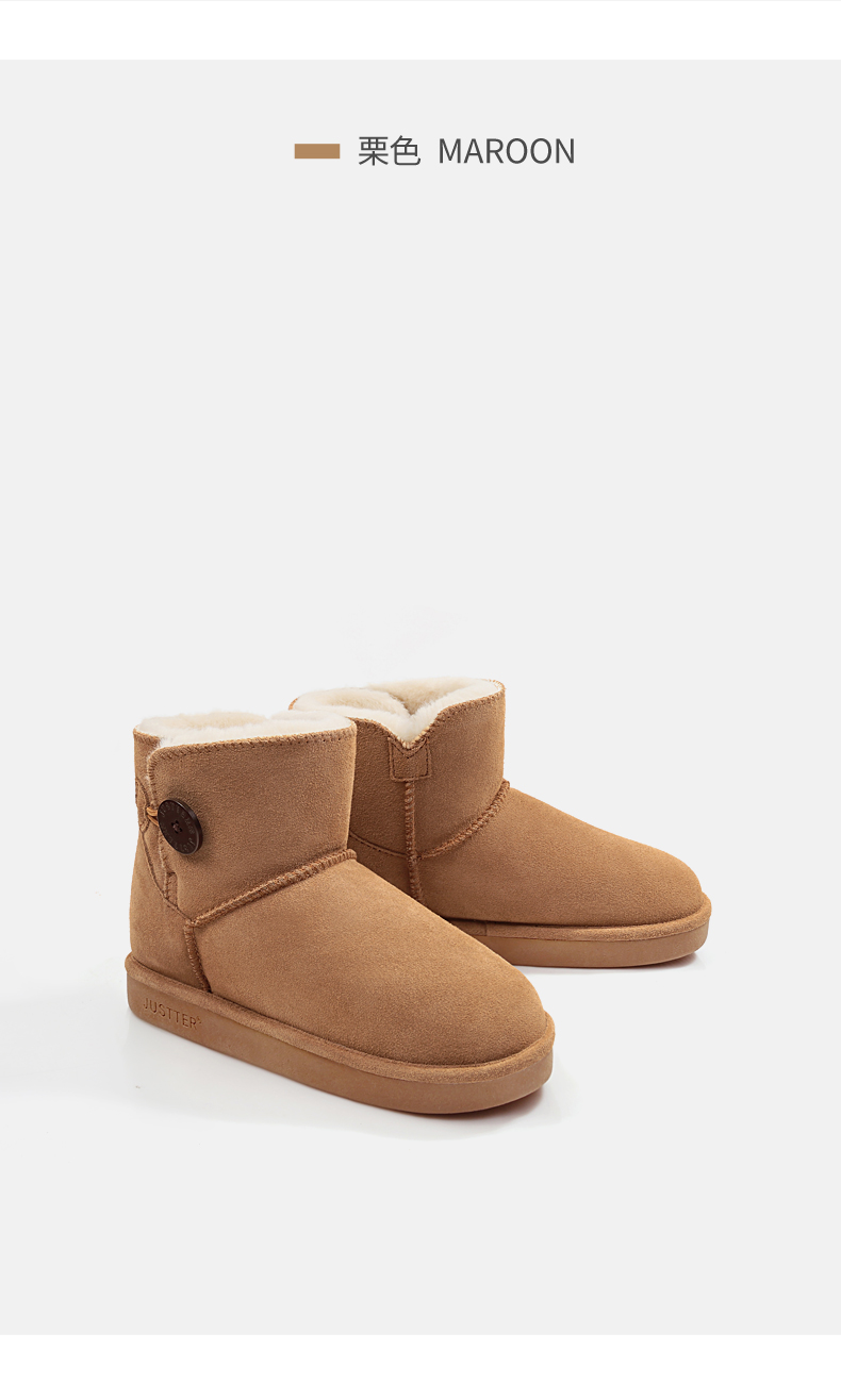 这款JUSTTER女内增高雪地靴,是2021年的新品,经典雪地靴造型,鞋面是用牛反绒皮制成的,同时运用纳米防水技术处理,无惧泼水,雨天也能照穿。内里是1300g加厚加长针织绒毛,柔软保暖。