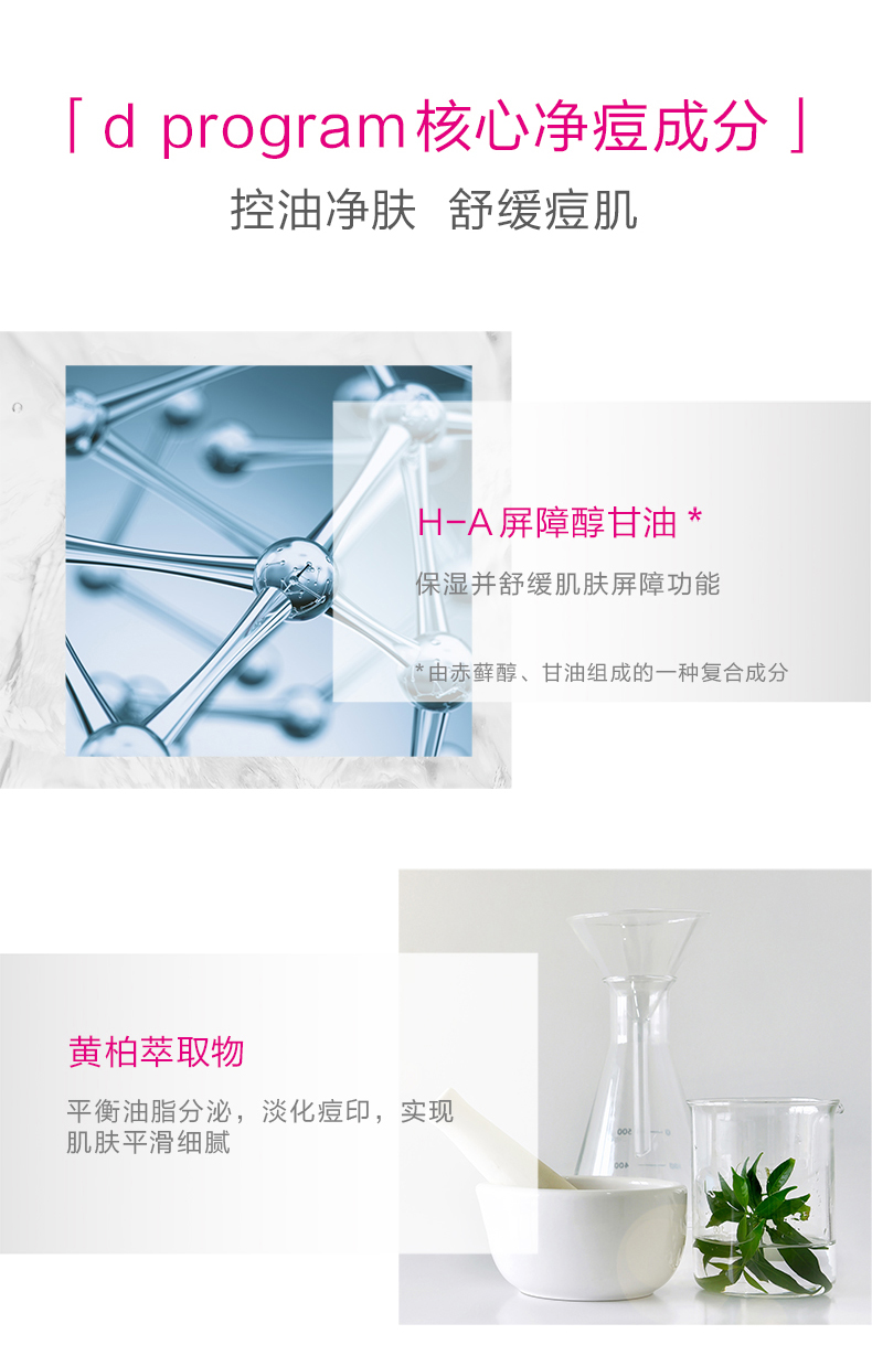 这款dprogram 安肌心语 净痘清爽控油护肤乳液,规格:100ml,针对油痘肌肤问题,需要调节油脂分泌,疏通毛孔,调理角质层;d program核心净痘成分,控油净肤,舒缓痘肌;空气般轻薄质地,无黏腻厚重感,不为肌肤增加负担。