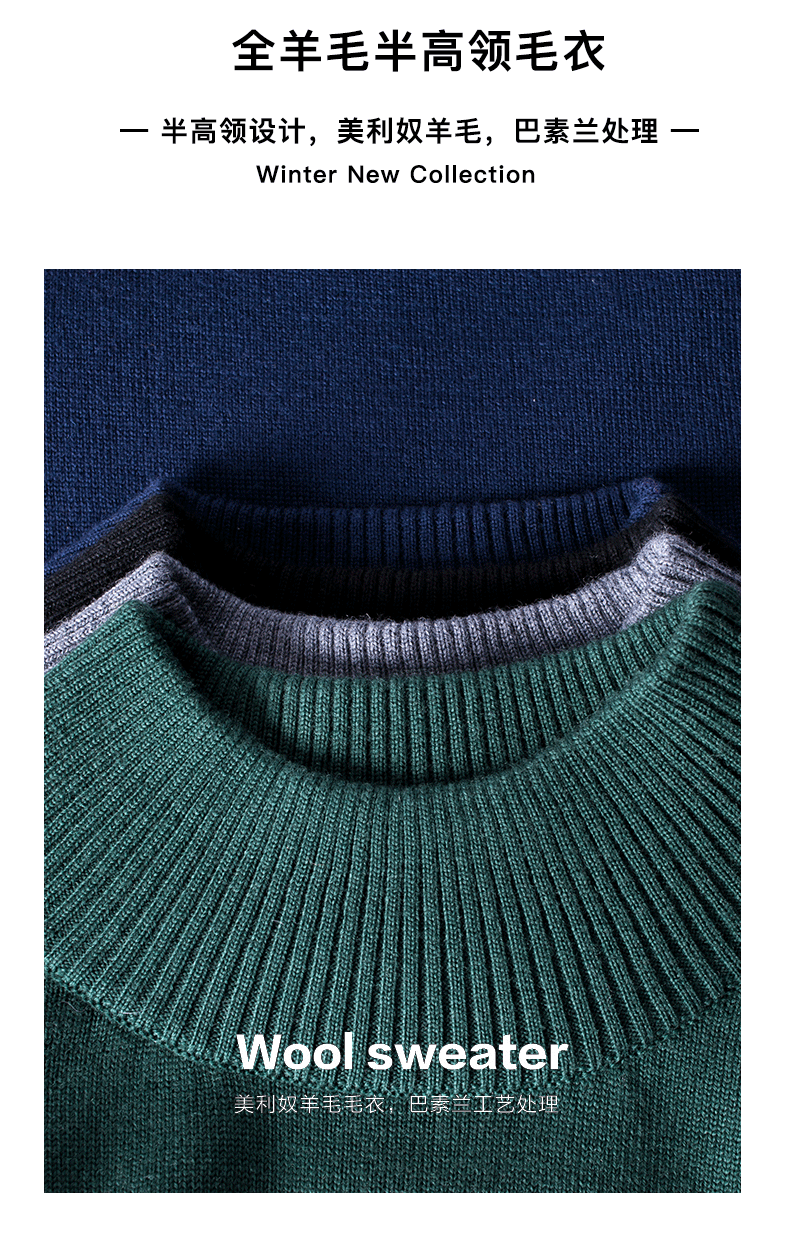 350克重中等厚度,表面经过消毛处理,手感软腻顺滑,且不易起球。半高领的设计,不像高领那样捂得严实,又能起到挡风的效果,在厚度上虽不如厚款,但实用性更好,可以从初冬穿到开春。