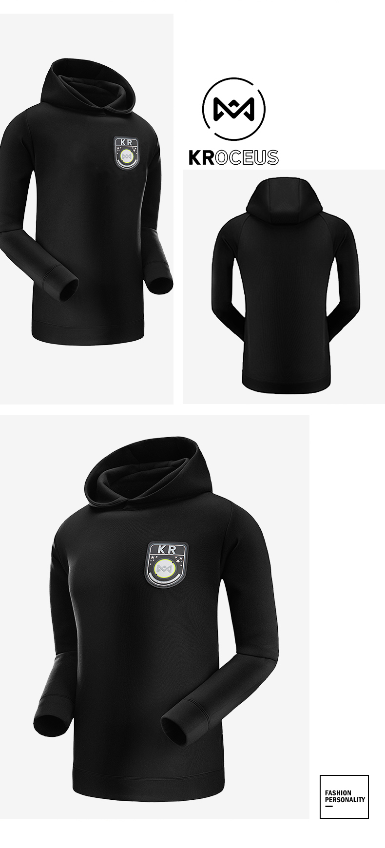 衣面底色是显瘦的纯黑色色调,搭配经典连帽套头卫衣款式,可以应对生活中多种场合搭配,耐穿耐看,休闲感十足。简约百搭。
