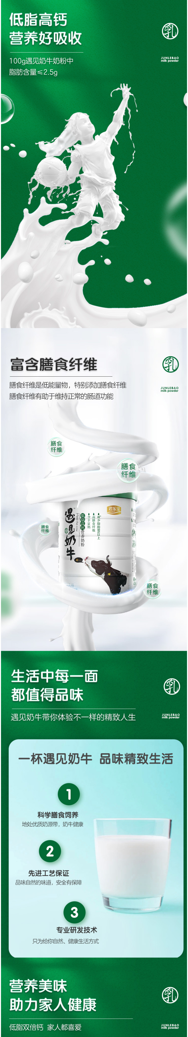 这款君乐宝 遇见奶牛 低脂高钙奶粉,是3岁以上人群使用的调制配方奶粉,主要为日常生活补充脂肪+钙+维生素等营养,家里人均可享用,包括儿童、青少年、成人及中老年人。