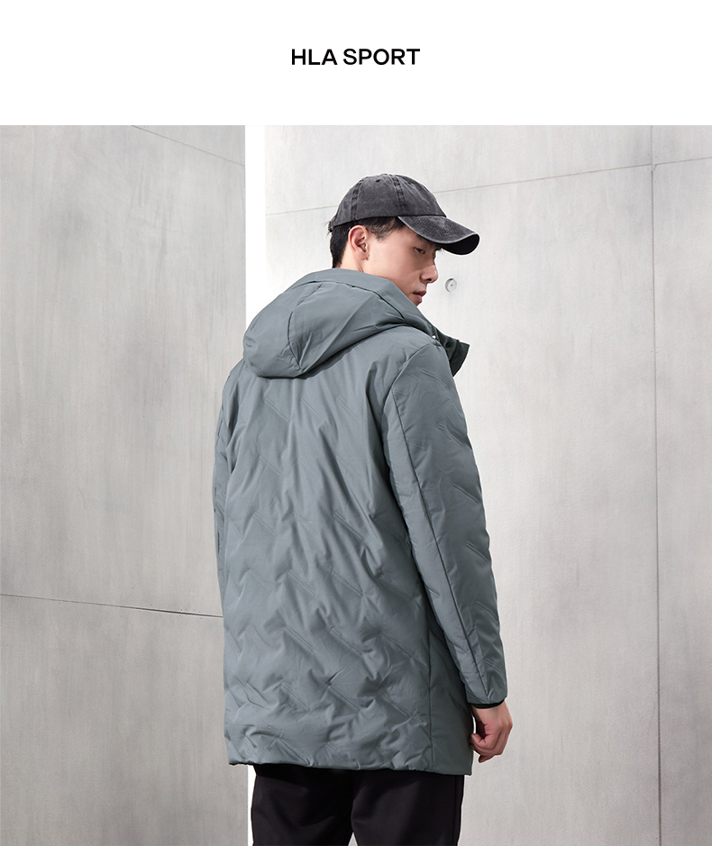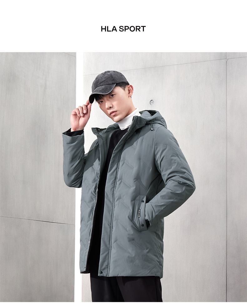 这款海澜之家男中长款连帽羽绒服,是2021的秋冬新款,外层使用的是100%聚酯面料,耐磨抗皱易打理,内里填充的是80%的白鸭绒,充绒量在89~120g左右,属于中等厚度,能抗0至-10℃。