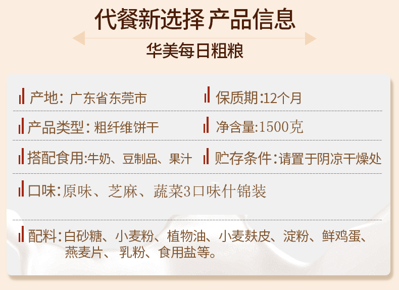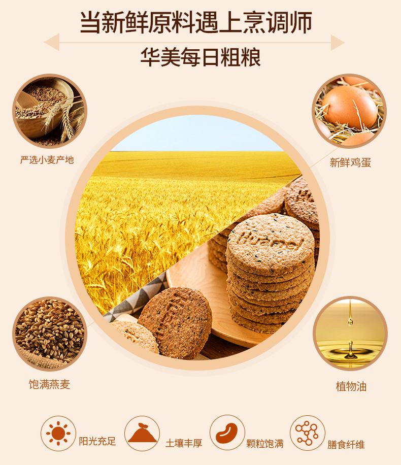 华美 粗粮饼干,精选面粉加上新鲜土鸡蛋搭配而成,香酥可口,香甜又美味。越嚼越香,美味营养;蛋香浓郁,久久回味。古法低温慢烘培,每一口都能品尝出不一样的用心美味,膳食饱腹,精心烘焙,酥香可口,好吃停不下来!规格:1500g。