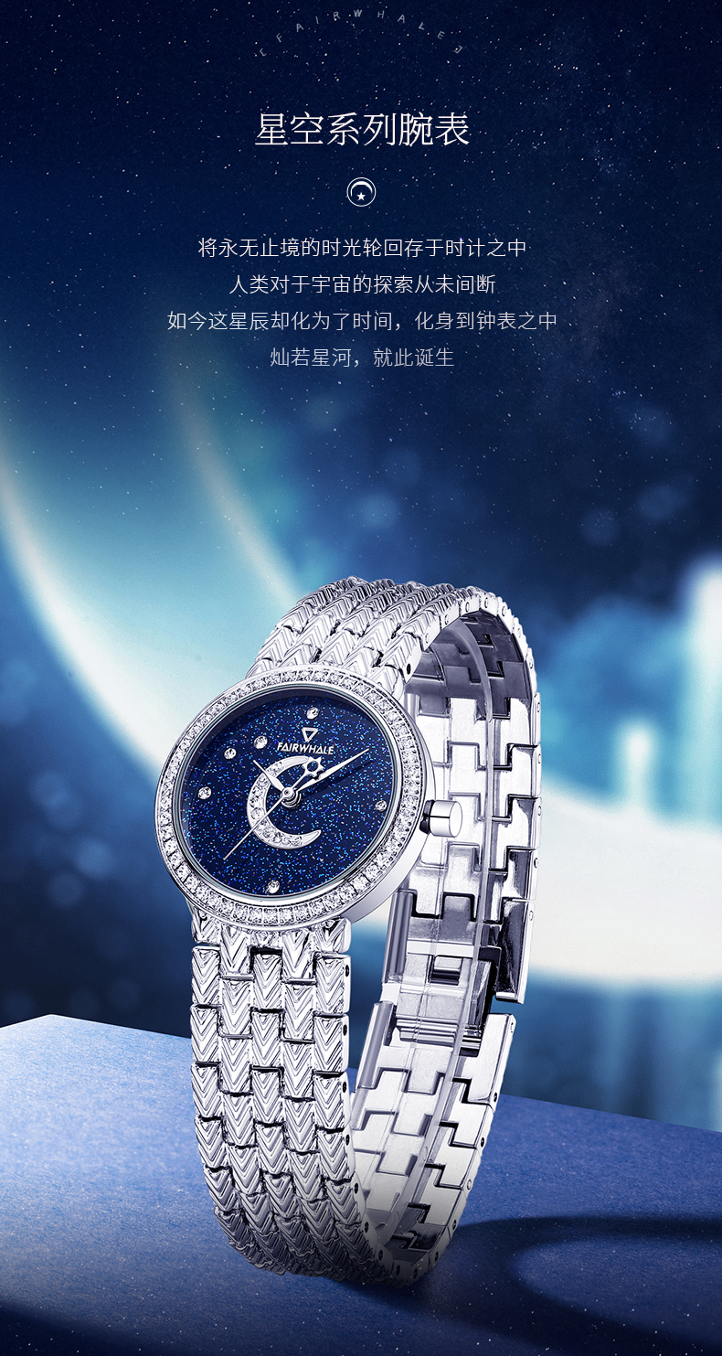 天猫马克华菲手表旗舰店1069元,可领970元优惠券,实付99元到手。这款Mark Fairwhale 马克华菲 星空系列满天星时尚女表,将永无止境的时光轮回存于时计之中,小巧精致,无限星空静谧璀璨,表盘采用幻彩蓝白砂石精心打磨,表圈镶嵌透明水晶,小巧精致,纤薄灵动,晶莹剔透,盈盈腕件平添一抹璀璨星光,上手效果精巧迷人。镀膜玻璃表镜,不锈钢表壳及表链,表壳直径28mm,厚度8mm,30米生活防水。