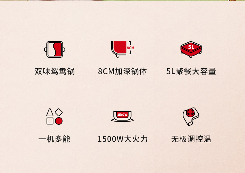天猫山本茗运专卖店149元,可领40元优惠券,实付109元到手,鸳鸯锅款这个价格,单锅款券后价格是99元。这款山本多功能电火锅 ,容量:5L,1500W大火力,3档可调,加热迅速均匀。特制不沾·锅底涂层,不沾涂层,绿色环保,耐高温耐腐蚀,不糊不沾易清洗,8cm加深锅底设计,一锅多用,煮火锅、炒菜煎炸都可。