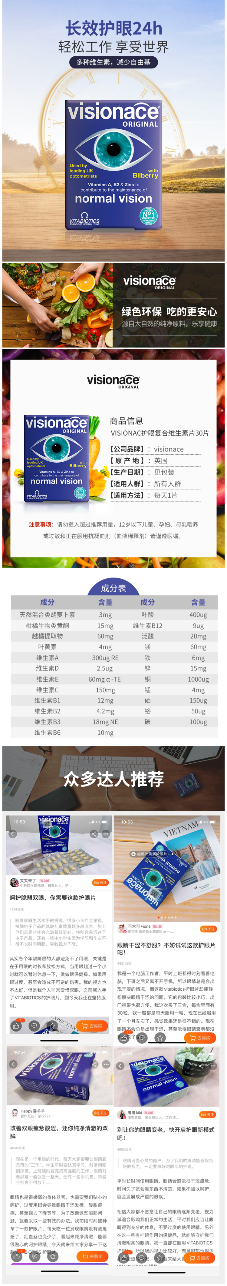 这款维百莱Vitabiotics 越橘叶黄素,英国原产,适用于各个年龄阶层,从天然物质中提取元素成分,富含叶黄素+复合维生素群+铁镁锌等多维营养,包括胡萝卜素、维生素A、C、E、铜硒、锌,共23种营养素。