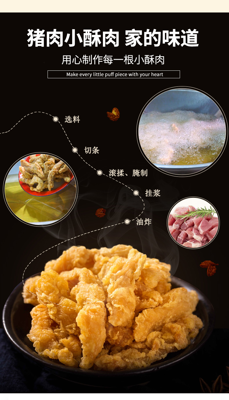 吴昕代言,齐汇农家椒香加热即食大份小酥肉,椒盐酥香,根根分明,精选精选上等猪后腿肉切条,惊喜面粉包裹炸制金黄,外酥里内,口感真心妙不可言,大人孩子都爱吃!