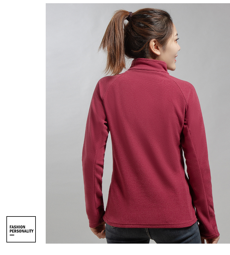在款式和细节上,男女均修身版型,半开禁拉链立领设计,拉链顶端有护颚设计,不会刮伤脖颈。外层是纹理质感面料,避免了抓绒起球的问题。袖口和下摆采用双车线工艺,不易开线,无论是直接单穿或者作为中间保暖层都没问题。