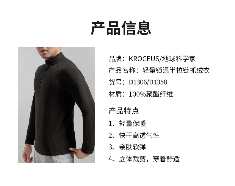 这款地球科学家半拉链抓绒衣,是2020年的秋季新款,采用Polartec 100面料,厚度中等,摸起来既软又柔,既软又柔还非常顺滑,穿脱不摩擦,完全没静电,保暖效果接近羊绒,但比羊绒要便宜很多,打理上也无需特别注意,脏了直接扔到洗衣机里随便洗。