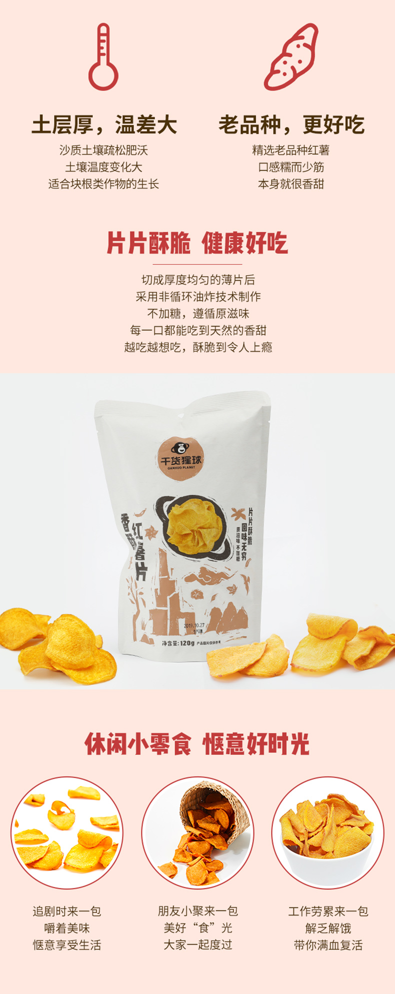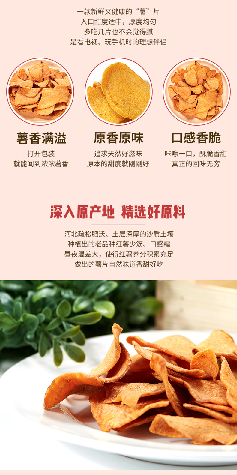 百果园香酥红薯片,甄选来自河北的优质沙土红薯,少筋、味道香浓,均匀切片,采用非循环油炸技术制作,不额外加糖,遵循原滋味,口口都能吃到天然的香甜,入口酥脆香甜,越吃越想吃。