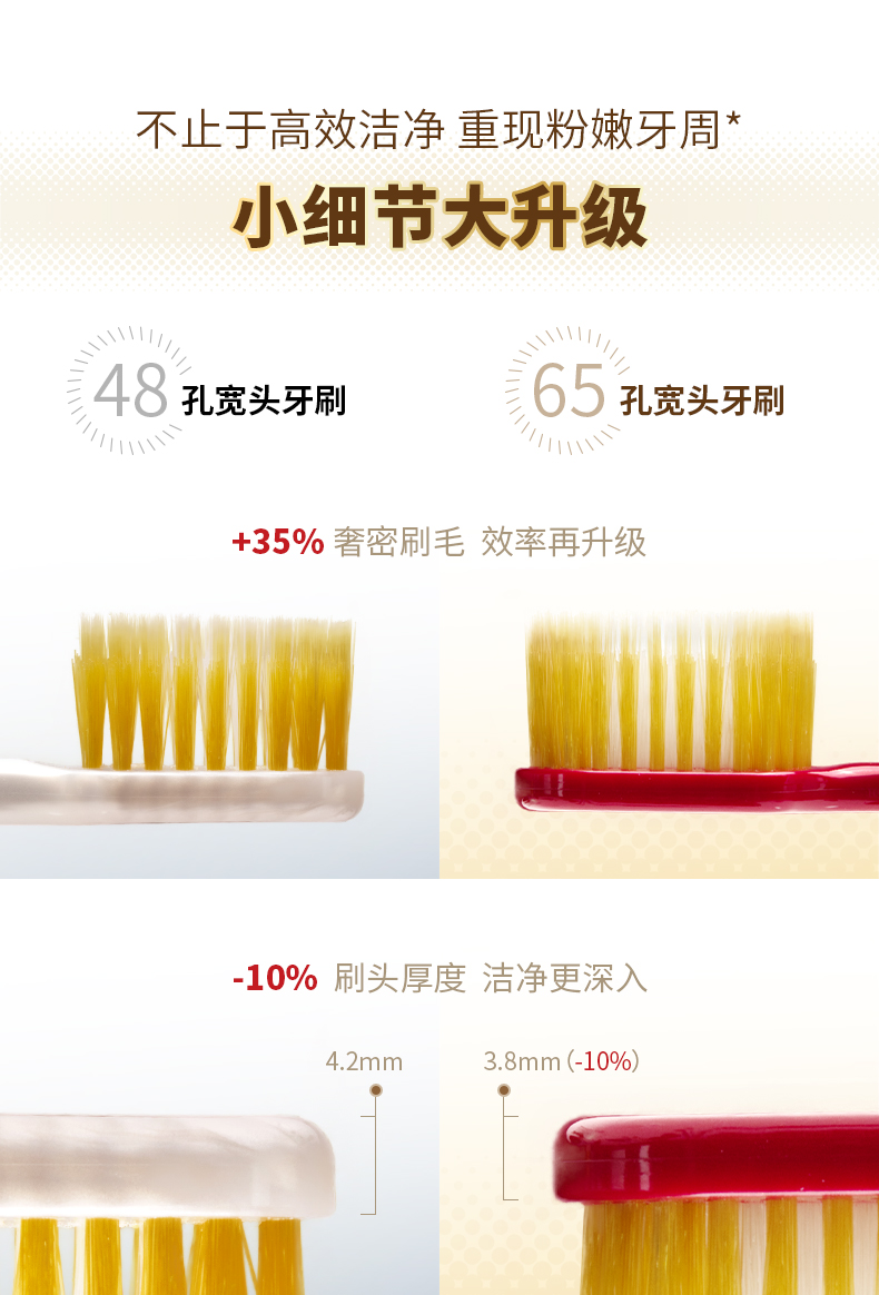 惠百施65孔宽头牙刷 – 升级宽头设计,高效除垢;三重植毛,全方位满足洁齿护齿需求。