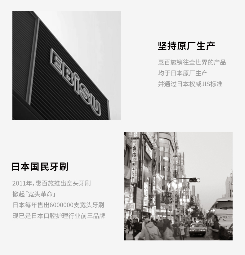 “惠百施”是日本惠比寿株式会社旗下的品牌,120年专注口腔护理,核心产品包含宽头牙刷和护齿工具两大系列,有一种100多年只为做好牙刷的工匠精神,“惠百施”宽头牙刷是网评最好用的牙刷,也是去日本代购的爆款之一。