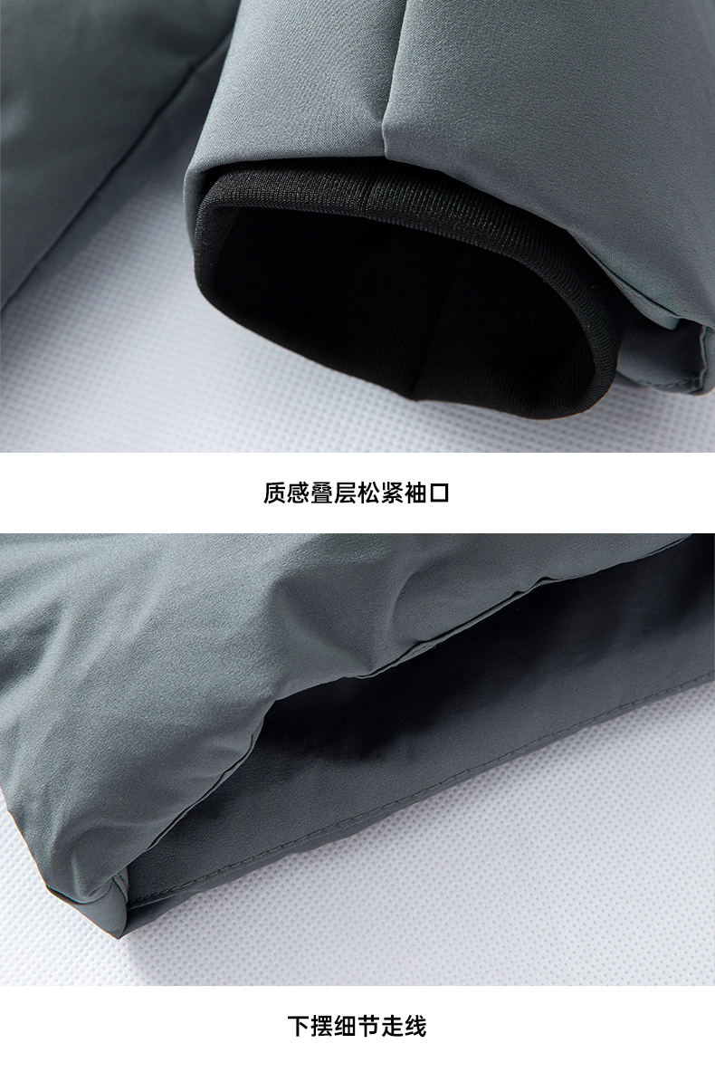 在款式上,中长款设计,下摆过臀,一体连帽、加宽加大的防风帽搭配半高衣领,能有效阻止寒风的倒灌;内置双层针织弹力防风袖口,双重门襟,有效保暖;两侧口袋有拉链,置物安全。
