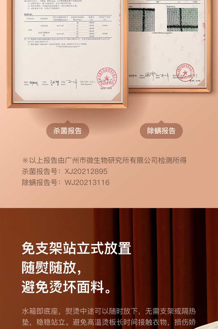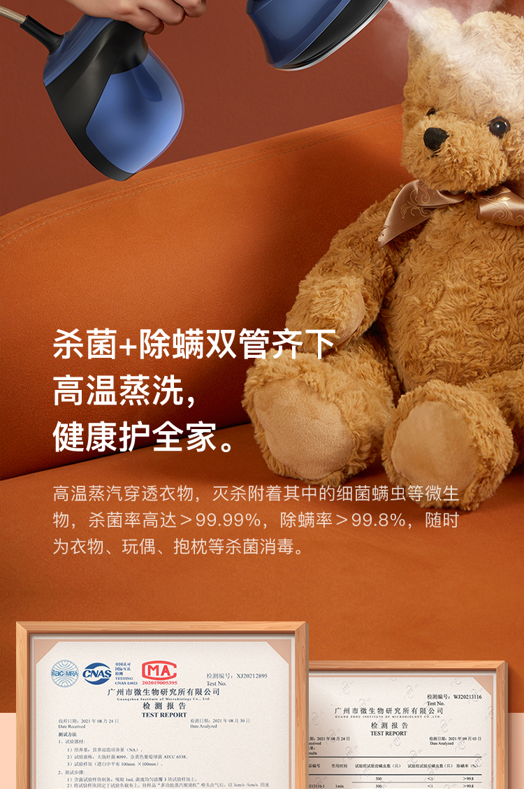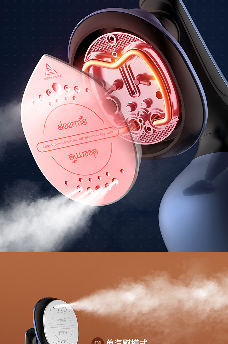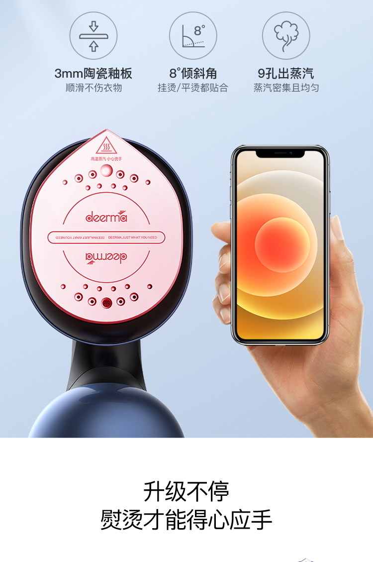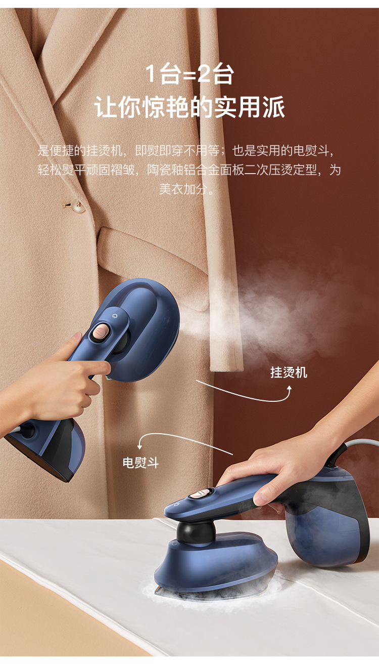 这款手持挂烫机,干熨+单汽熨+双汽熨三种模式可选,即能平熨压烫出笔挺衣型,又具备手持挂烫机的轻巧便携,采用新一代双核汽道传导,水经由2条独立的路径到达熨板,经过内部多次加热雾化后,上 下双排同时喷出密集大蒸汽,直击深层褶皱,智能防滴系统,智控进入水量、充分加热汽化,不留水渍,即熨即穿,方便快捷。