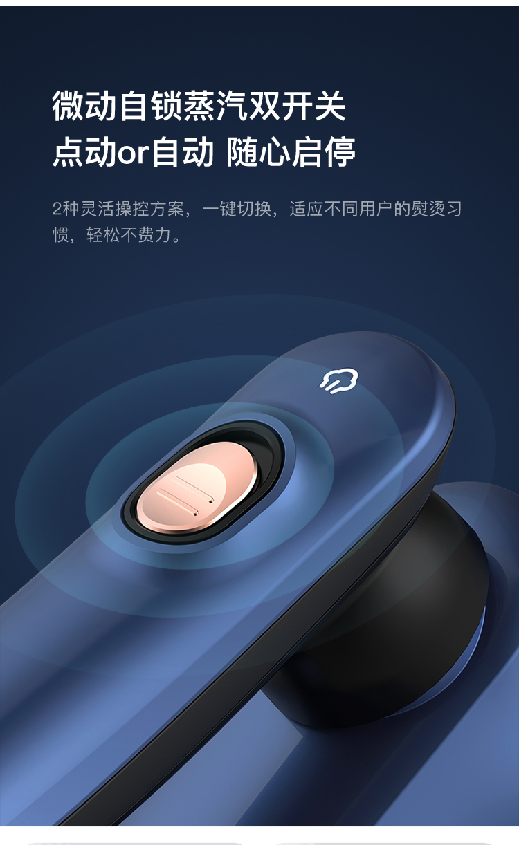 1000W大功率,搭配新型微增压汽道设计,在至短时间内送出源源高温蒸汽,软化纤维、闪电除皱、微动自锁蒸汽双开、点动or自动2种灵活操作,一键切换、满足不同用户习惯。