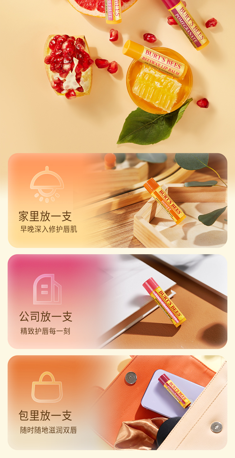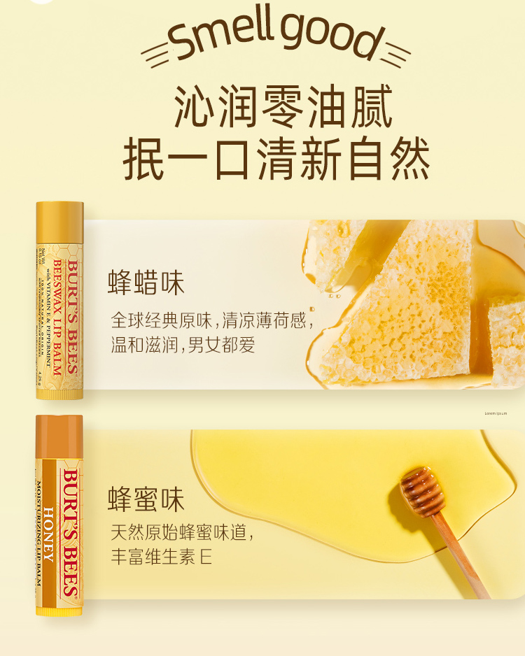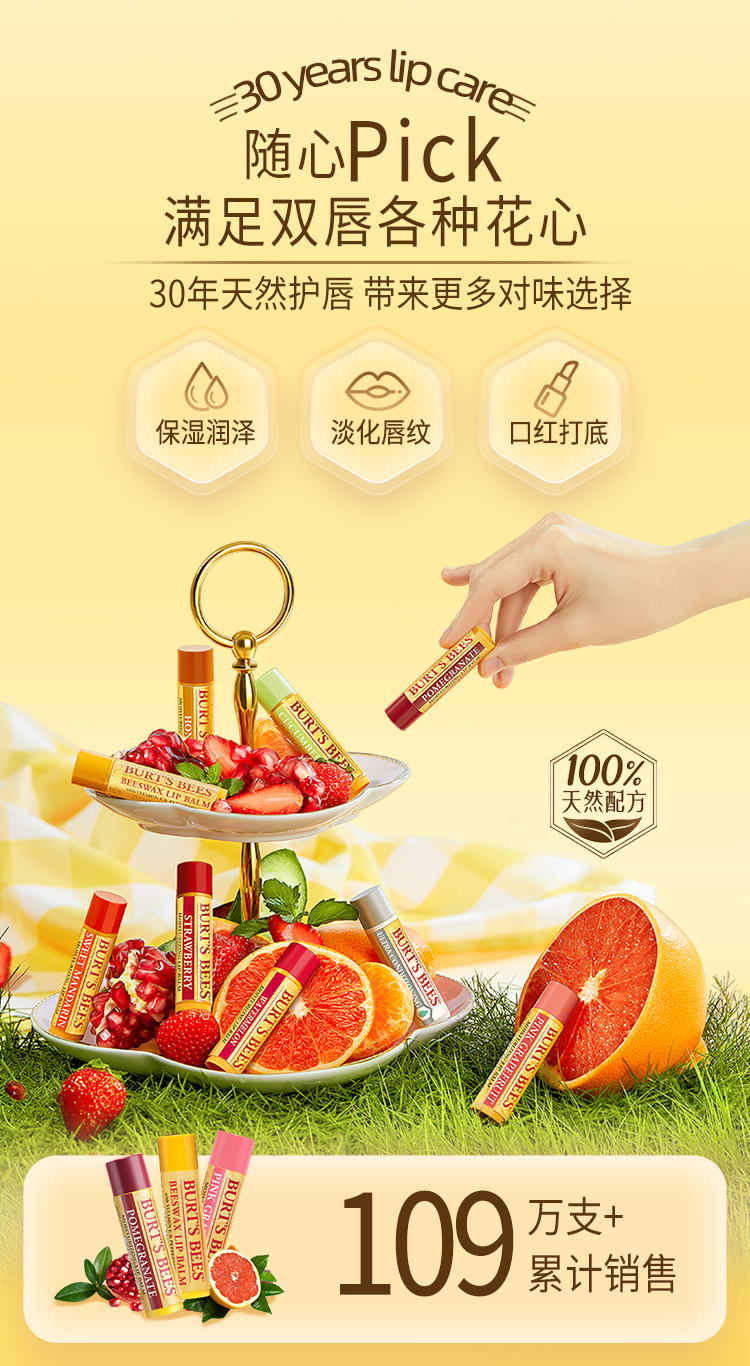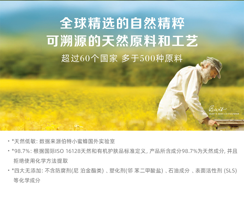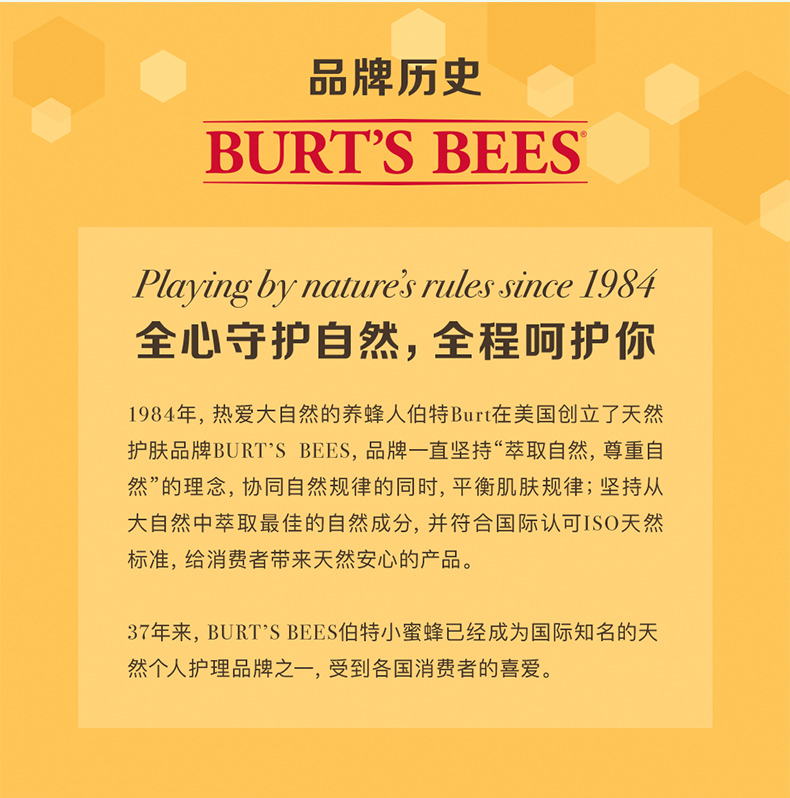 1984年Burt's Bees诞生在一个养蜂场,1991年研发出来了润唇膏并且成为明星产品,至今制造超过150项产品,涵盖肌肤保养、身体保养、秀发保养、唇部保养、男士专用、婴儿保养及户外防晒系列。