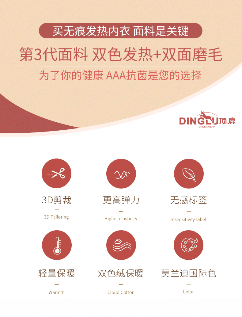天猫顶鹿旗舰店69.9元,可领20元优惠券,实付49.9元到手,双色双面抗菌此价,面料科技发热纤维,双面磨绒织造,面料轻盈柔软,锁住身体热量,吸湿排汗又亲肤,边缘处采用激光无痕切割,舒适不磨人,连接部位四针六线无骨缝合,舒适性强,无异物感。