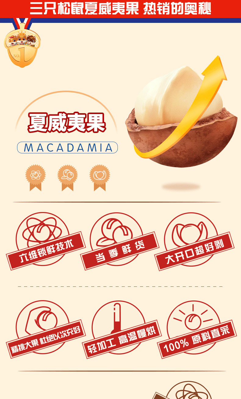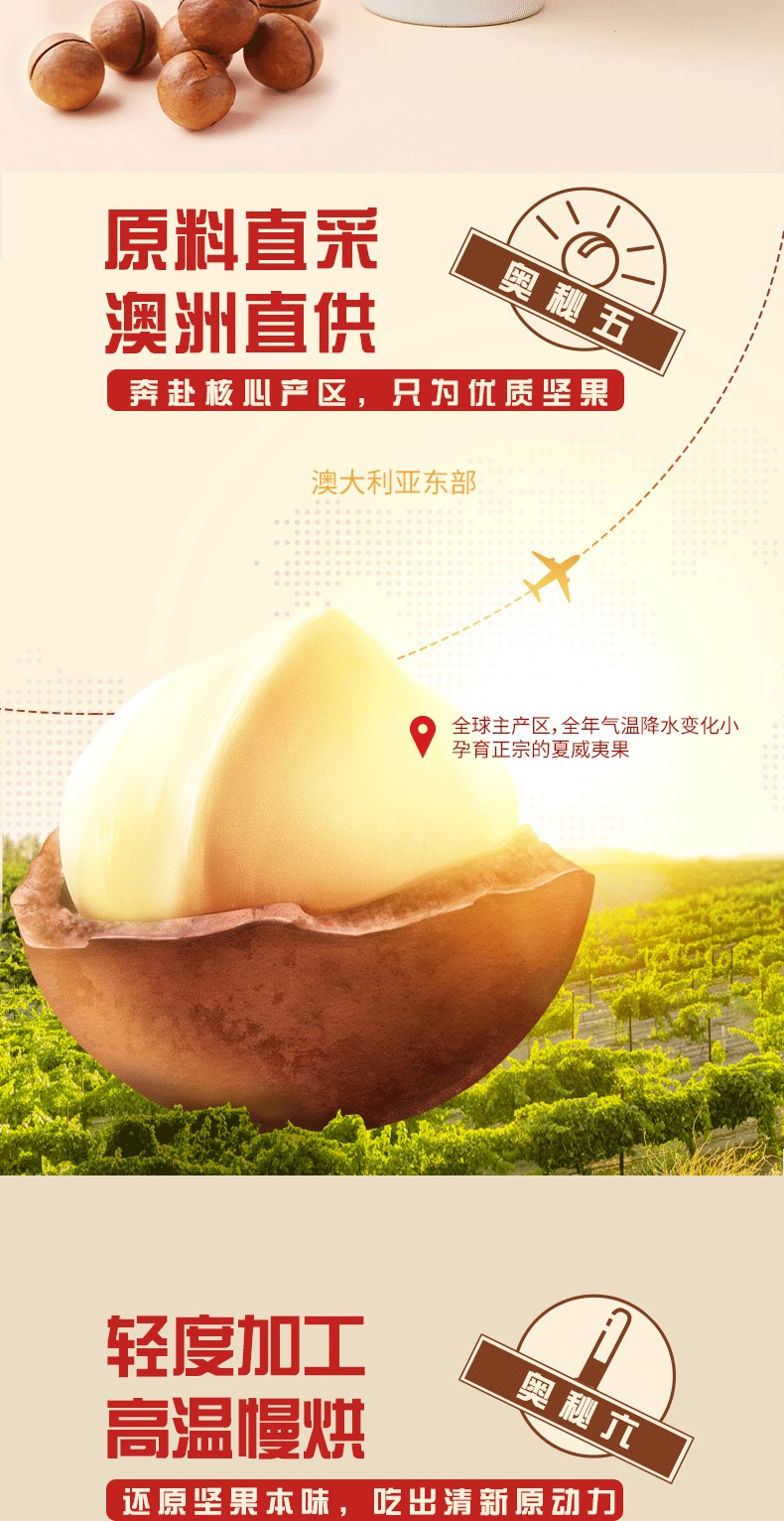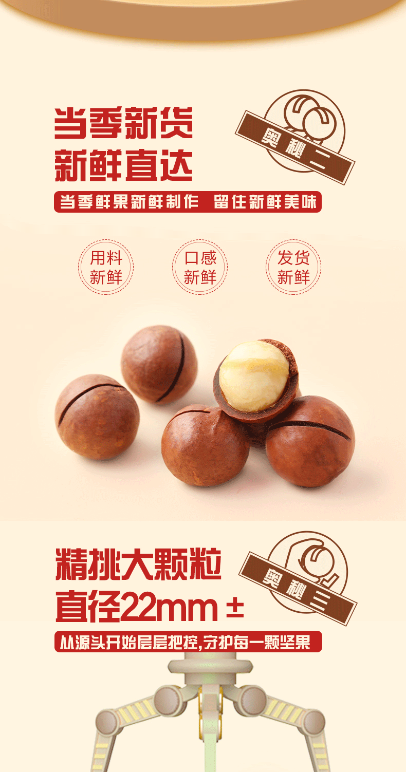 夏威夷果又叫澳洲坚果,果仁香酥滑嫩可口,有独特的奶油香味,是世界上品质较佳的食用坚果,素有“干果皇后”、“世界坚果之王”之美称 ,营养丰富,含油量 70% -79%, 尤其以富含不饱和脂肪酸为特点,以油酸和棕榈酸为主,蛋白质9% ,还含有丰富的钙,磷 ,铁,维生素B1、B2和人体必需的8种氨基酸。