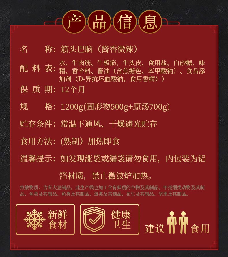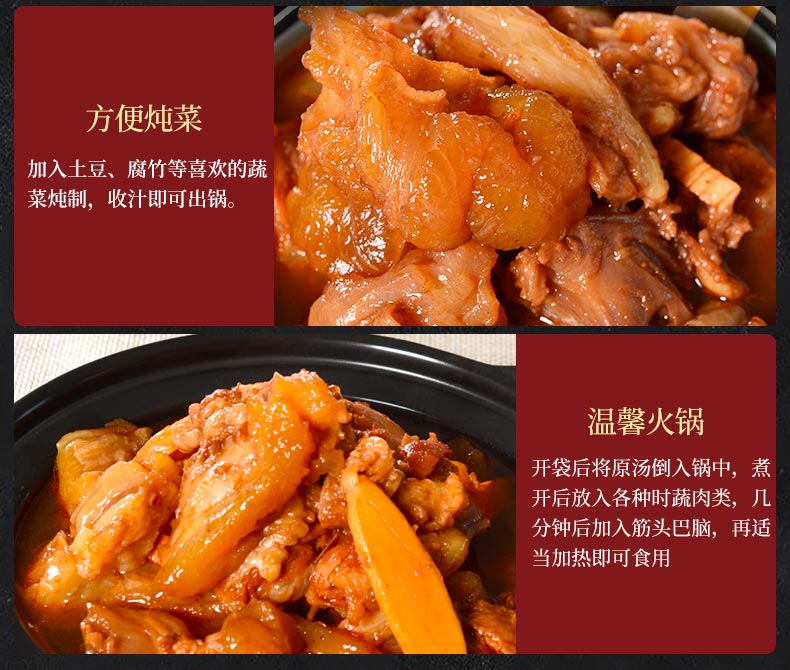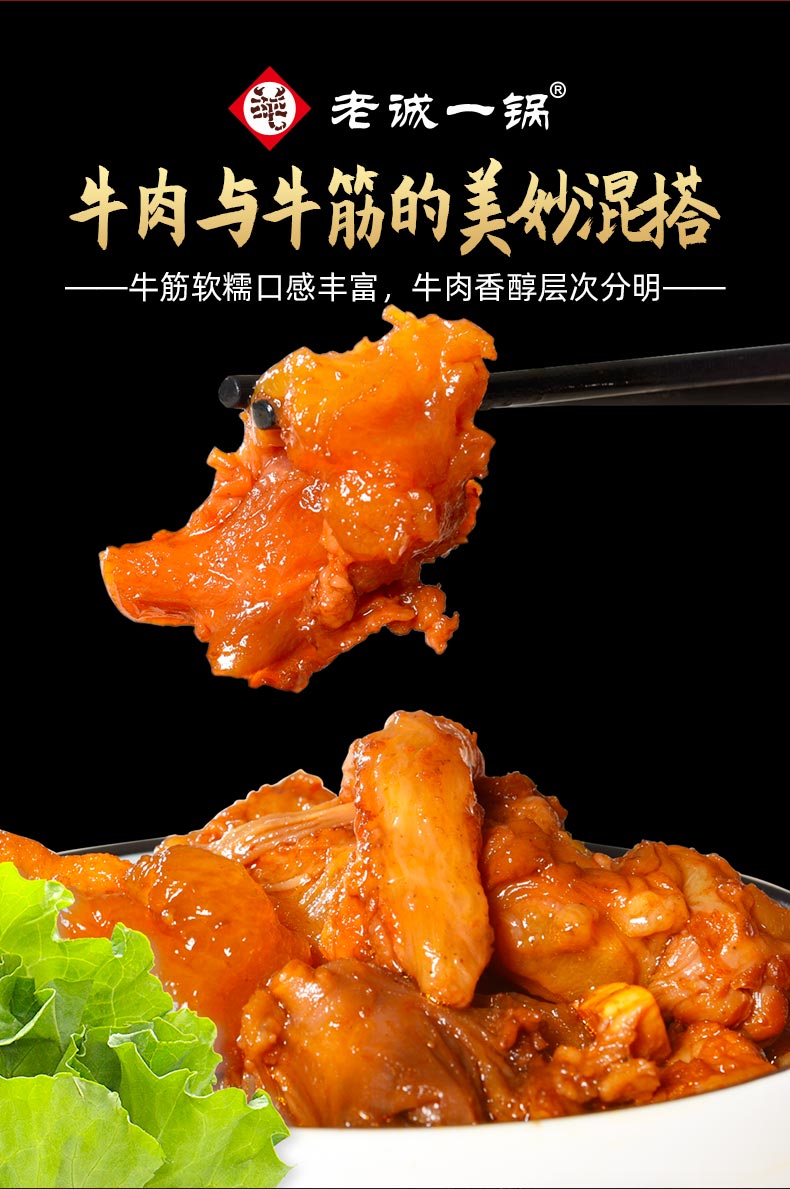 牛肉与牛筋的美妙混搭,30余种调料精心熬制3小时,充分卤煮入味,肉质鲜嫩软烂适中,入口弹牙。