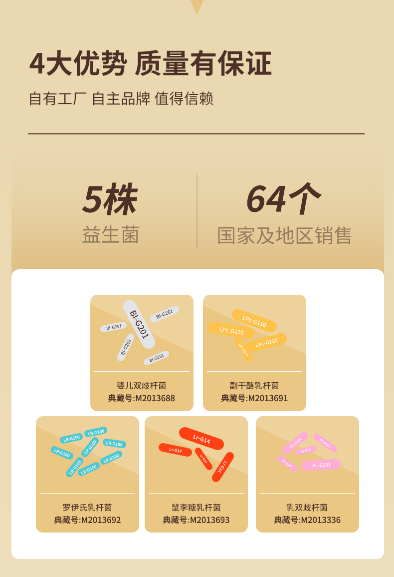 可有效促进有益菌繁殖,采用多层包埋技术,使益生菌保持活性,不需冷藏,随时给身体补充益生菌,淡淡的奶香味,天然好口感。主要作用是调理肠胃,缓解便秘、腹泻、腹胀、不消化等问题,保卫肠道健康,规格是2g*5袋*4盒。