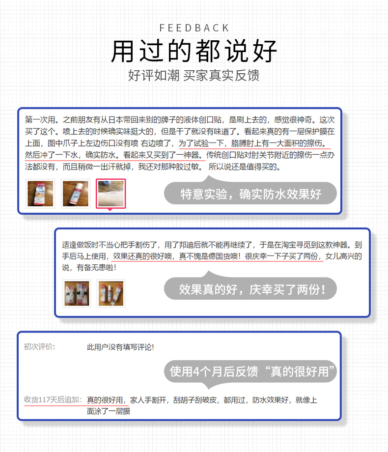 天猫SOS海外旗舰店79元,可领20元优惠券,实付59元到手。这款SOS 液体创可贴,德国原装进口,喷出后30秒快速成膜,自带消炎,保护伤口促愈合,同时还防水透气,2-3天后自行脱落,无需特殊关照,且不受关节束缚,就跟没贴东西一样。