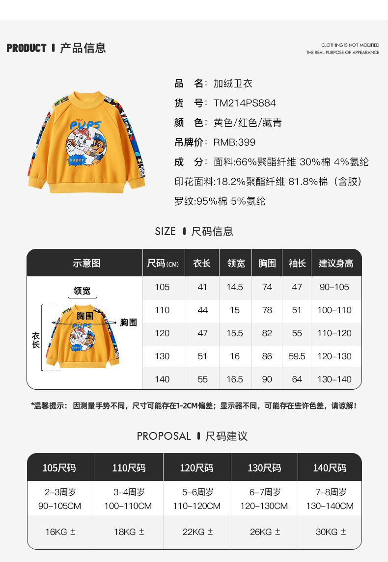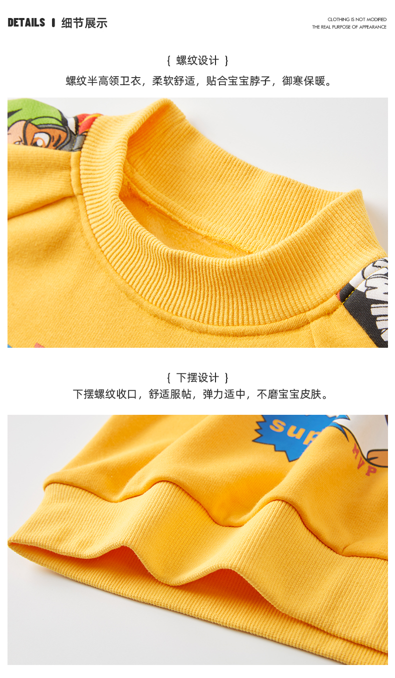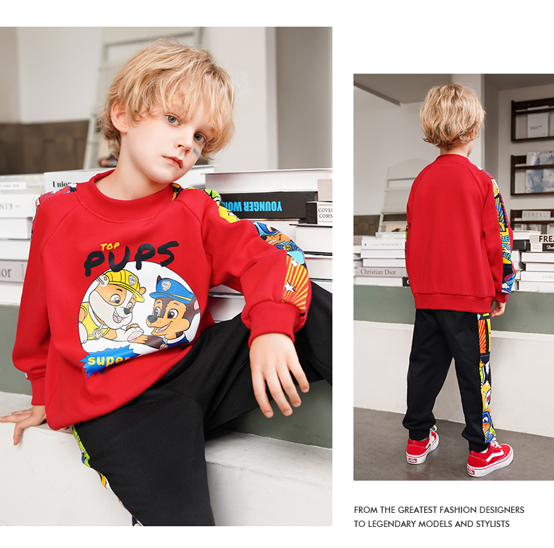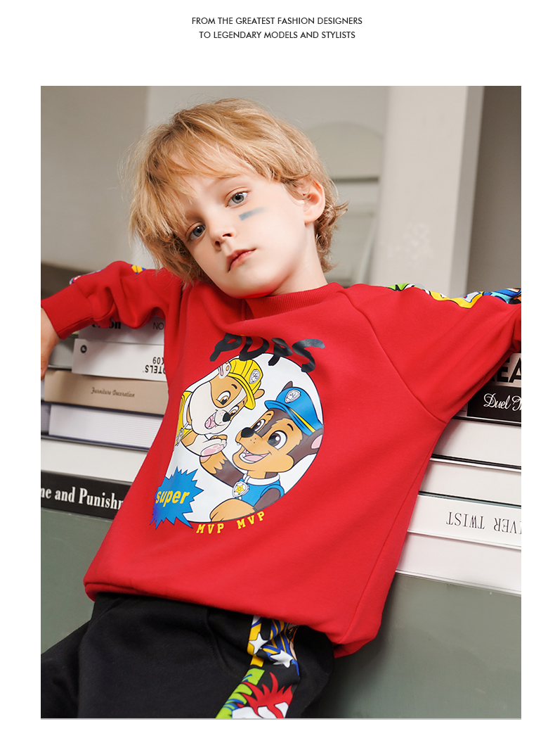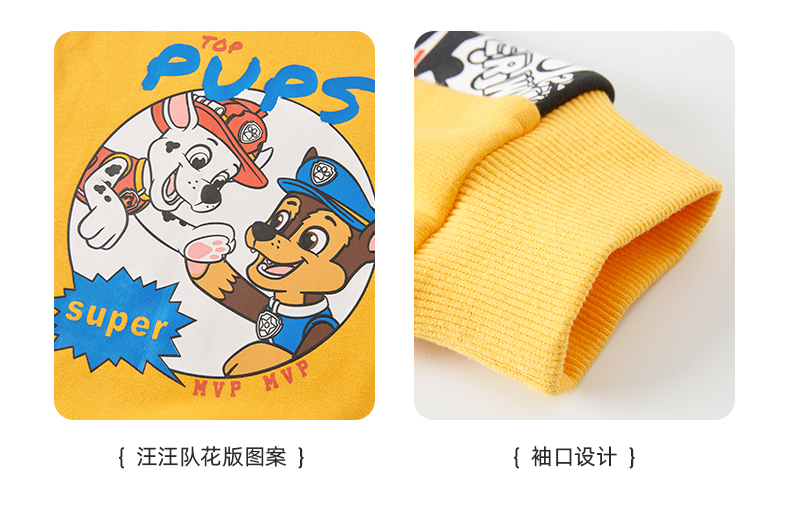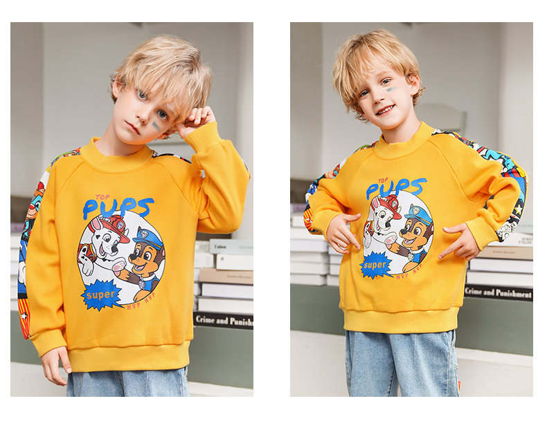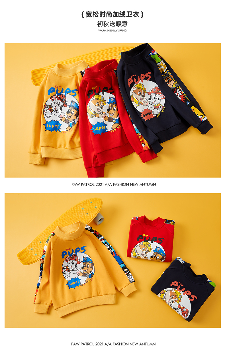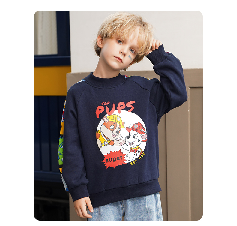 Paw Patrol 汪汪队立大功 儿童加绒卫衣,采用聚酯纤维66%+棉30%+氨纶4%材质,舒适透气,手感柔软。螺纹半高领,柔软舒适,贴合宝宝脖子,御寒保暖。下摆螺纹收口,舒适服帖,弹力适中,不磨宝宝皮肤。图案胶浆印花,狗狗与字母结合,与衣服相呼应,时尚统一。