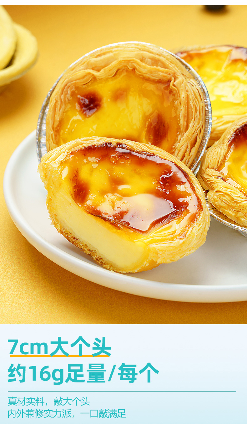 这款绝世 蛋挞皮30个+蛋挞液500g,蛋挞皮是直径7cm大直径款,采用小麦粉等制作而成;蛋挞液采用鸡蛋、纯牛奶等制作而成。层层酥脆,美味可口,营养价值高。烘焙制作简单方便,在家轻松做蛋挞。
