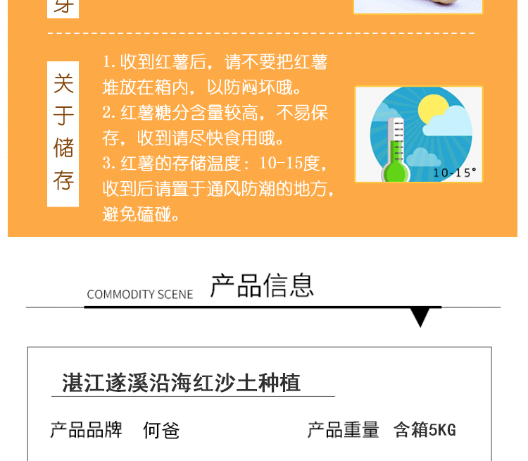 豪悦成农业的“何爸红薯”,种植于湛江遂溪县北坡镇周围的沿海红沙土地区。这种纯天然的盐碱地红沙土壤,沙土比例为7:3或5:5,较高的含沙量导致了高出一般水平的土壤温度,虫子难以繁殖生存,因此产出的红薯虫眼少,表皮光滑无皱痕,口感上佳且易保存,甚至可越冬存储至次年夏天不变质。不仅糖分充足、口感好,更含有丰富的膳食纤维、碳水化合物、胡萝卜素、维生素和钾、镁、铜、钙等人体所需的十余种微量元素,能够为人体提供多种营养成分,具有预防亚健康、减肥、抗癌等保健作用。