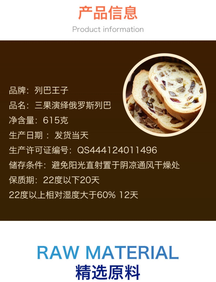天猫列巴王子旗舰店21.9元,可领6元优惠券,实付15.9元到手。第一款尝鲜款此价,添加了核桃仁+葡萄干,此外还有多种款式可选,略有差价。