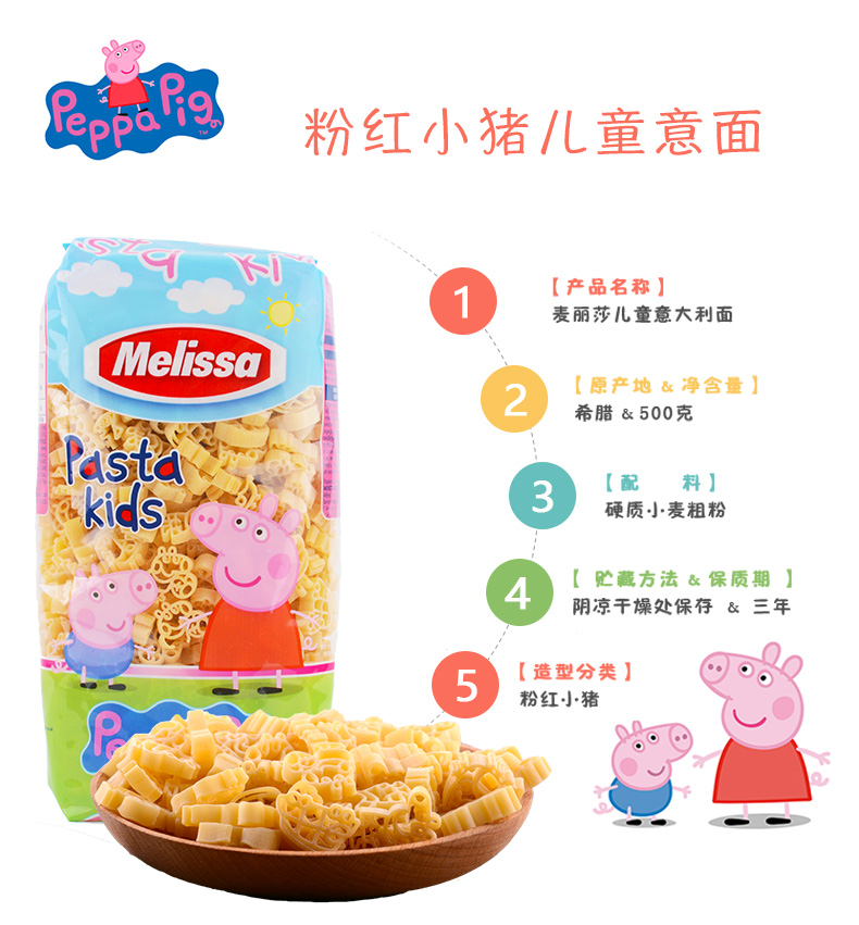 这款麦丽莎意大利面是专为儿童设计,把面条做成卡通造型,希腊原装进口,以杜兰小麦为原料,这个品种属于硬质小麦,具有高密度、高蛋白质、高筋度等特点,做成的意大利面呈金黄色,耐煮、面质软弹,口感劲道爽滑。