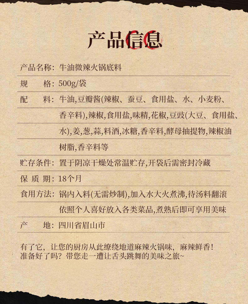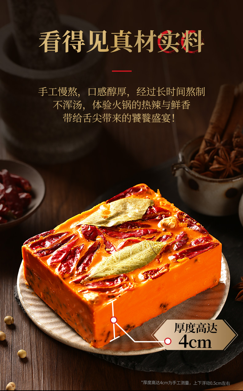 这款臻鲜 微辣牛油火锅底料,正宗四川风味,手工全型,每袋都是手工炒制和等封装。
