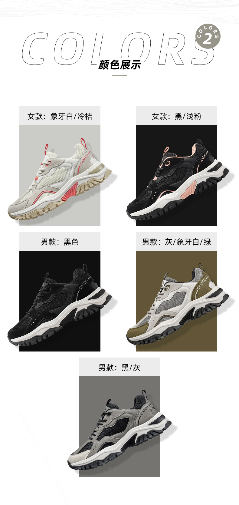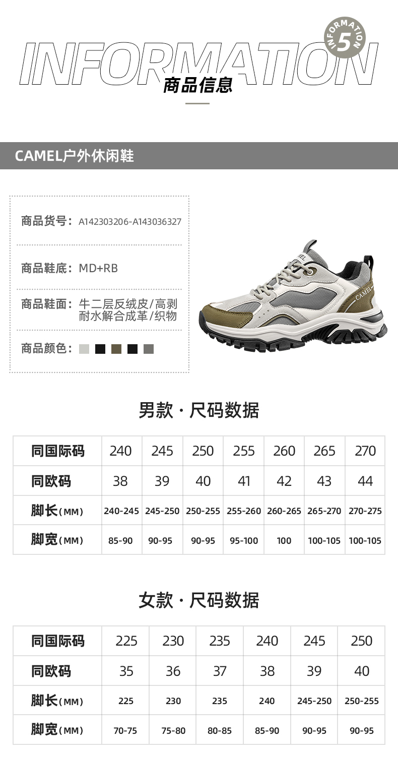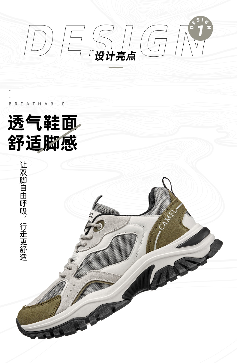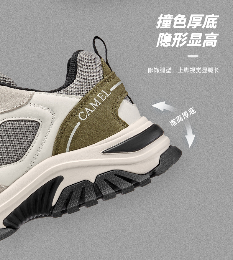 刘涛同款登山鞋,鞋面采用二层返绒牛皮+革面+网布多种材质拼接,复古新潮撞色设计,视觉层次感丰富。MD+RB组合大底,轻盈脚感,防滑耐磨,无忧湿滑路面,增高厚底,避震缓冲,修饰腿型,视觉显高显腿长,日常都市、户外出行时尚易搭。