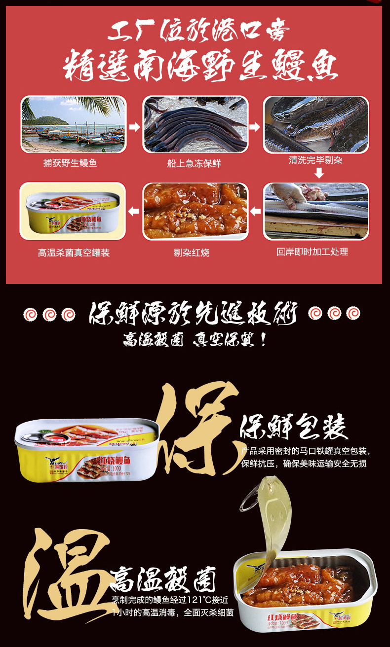 鹰金钱百年老字号,经典配方,传统工艺,鳗鱼是日料中必备的,其肉质紧实肥美,嚼劲十足,配饭简直是一绝,夏天天热不爱做饭的时候,红烧鳗鱼+米饭就是非常丰盛的一餐。