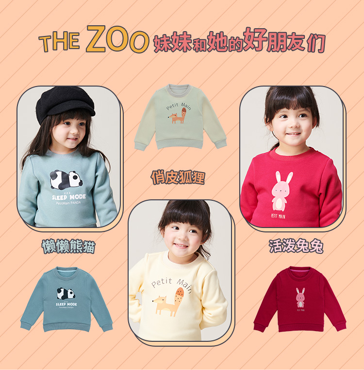 这款petit main 2020秋季新品 儿童套头卡通加绒卫衣,设计师精心搭配的12组图案时尚配色,卡通印花,男女童款,内搭外穿皆可。舒适柔软亲肤,撞色运动设计,时尚范十足,罗纹袖口、下摆,更贴身防风。