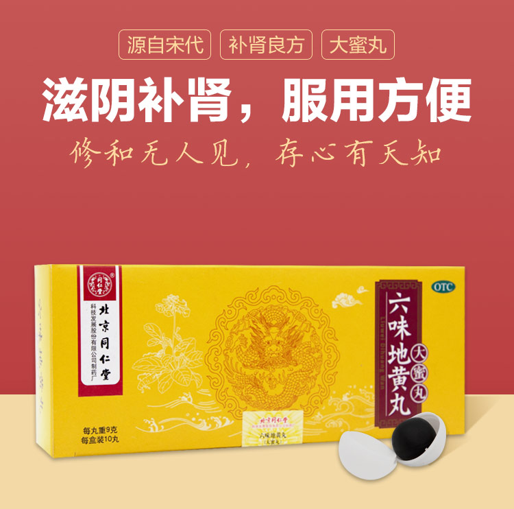 同仁堂六味地黄丸是多年做药品的老品牌了,产品质量可以保证。这款六味地黄丸大蜜丸,主治肾阴亏损、腰膝酸软、骨蒸潮热、盗汗遗精以及头晕耳鸣等肾虚症状。规格:9g*10丸/盒。