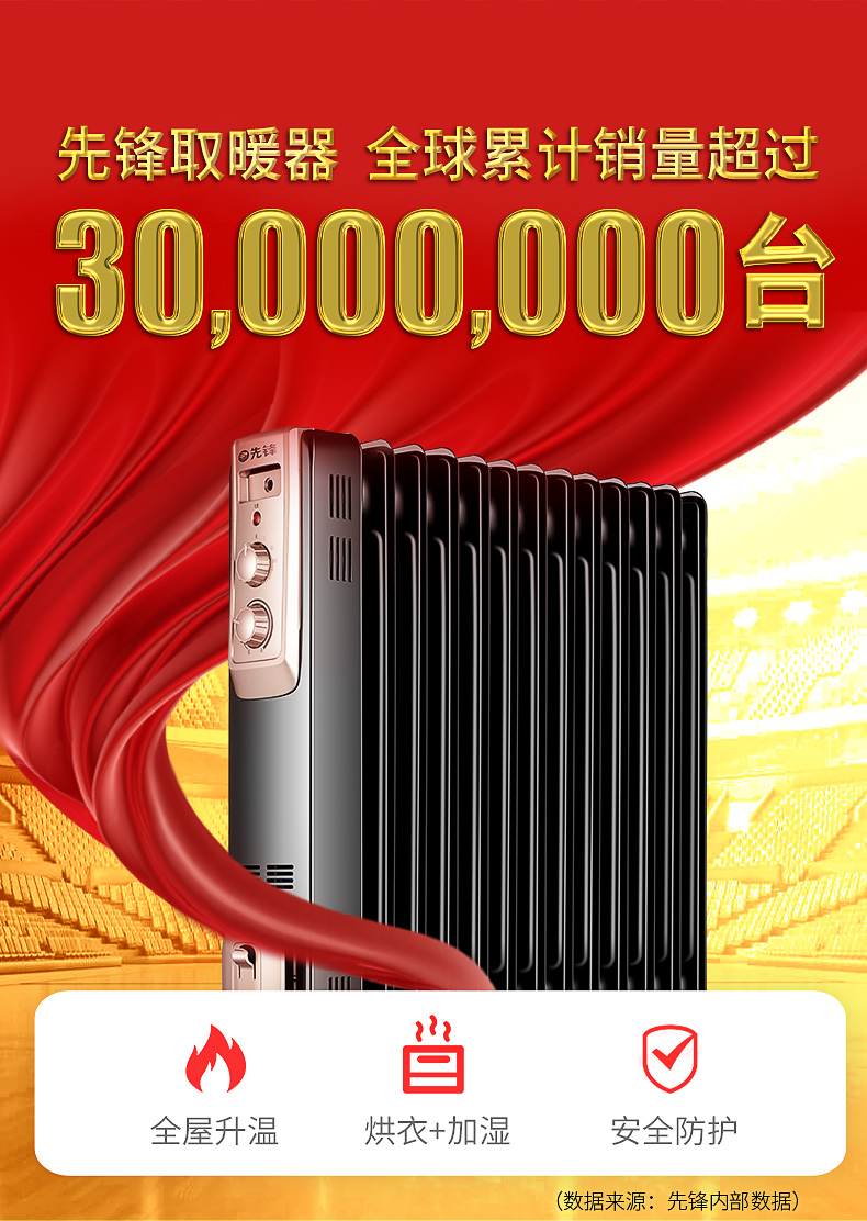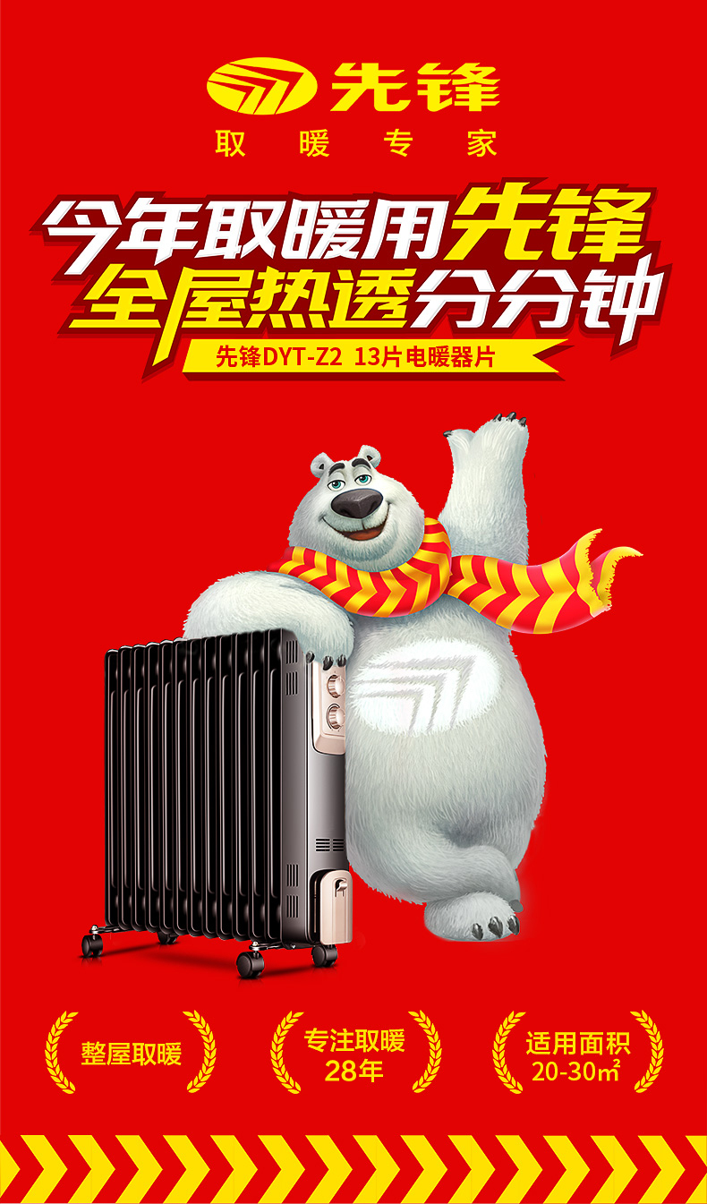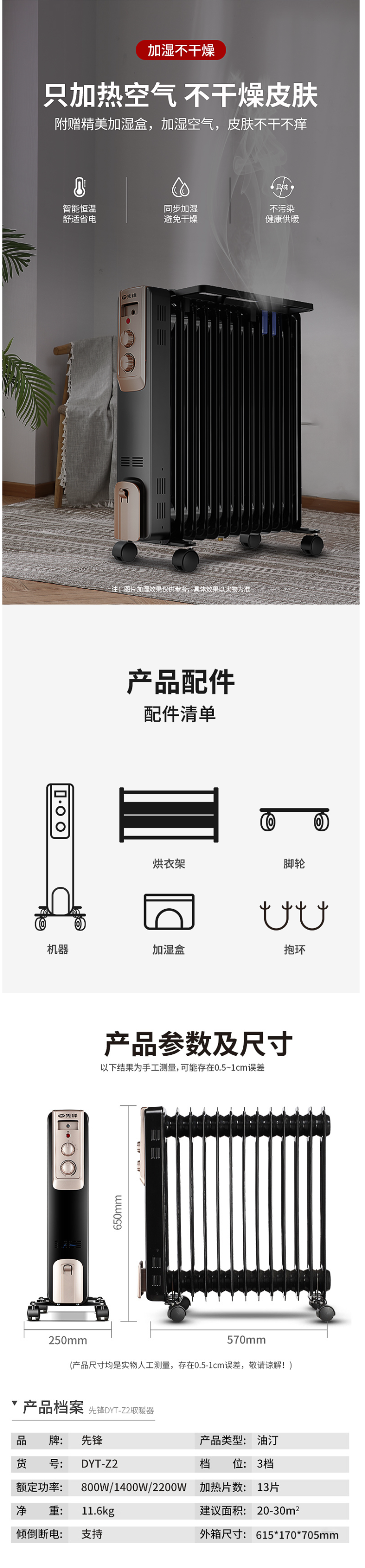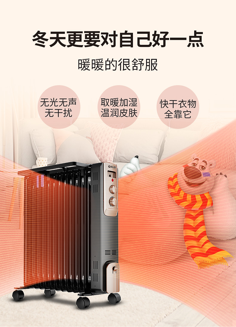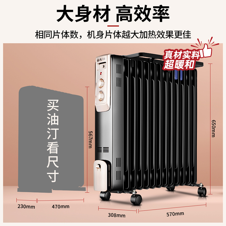 这款先锋家用油汀电暖气片,采用13片双U型发热导管设计,与油面接触面积更大,加热速度更快,短时间内实现油路升温。四重安全保护机制,智能恒温系统,最高满足30平米房间取暖需要。