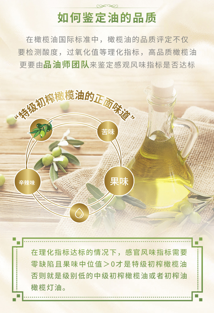 橄榄油在地中海沿岸国家有几千年的历史,在西方被誉为“液体黄金”,“植物油皇后”,“地中海甘露”, 原因就在于其极佳的天然保健功效,美容功效和理想的烹调用途。可供食用的高档橄榄油是用初熟或成熟的油橄榄鲜果通过物理冷压榨工艺提取的天然果油汁,是世界上唯一以自然状态的形式供人类食用的木本植物油。