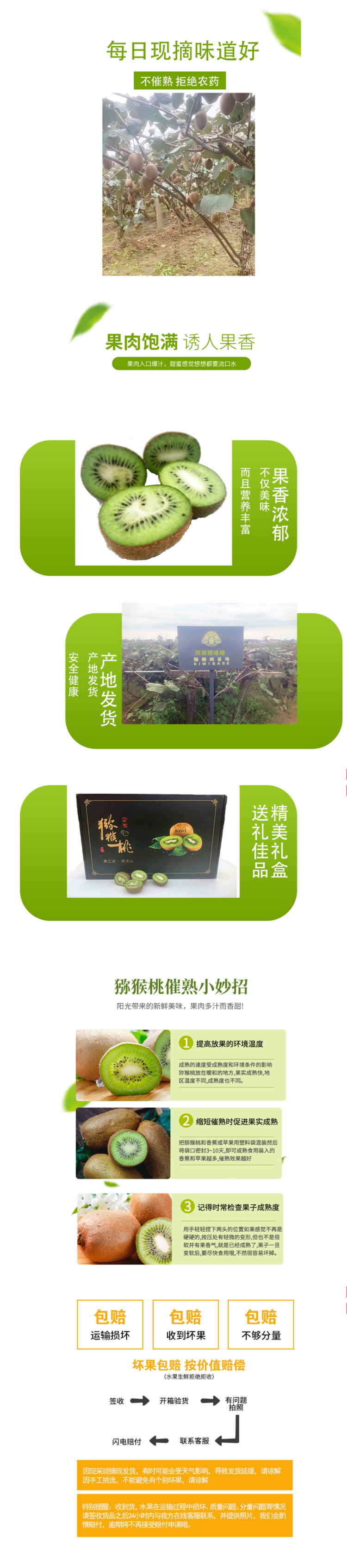 这款猕猴桃是陕西西安周至原产地生产、并发货,果个大(均在100克上下),果形整齐、皮薄肉厚,果肉翠绿,饱满多汁、酸甜适口,口感绵软,香甜细腻。