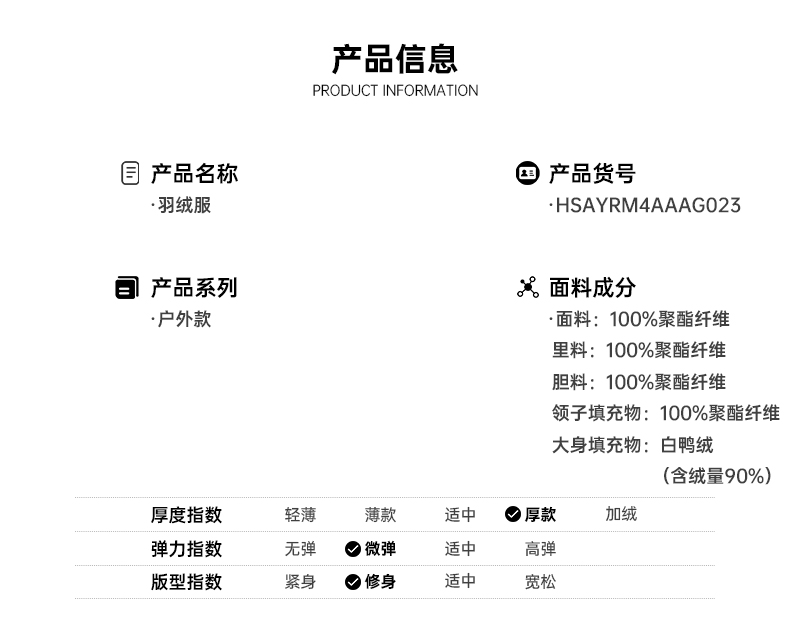 这款海澜之家男休闲保暖连帽羽绒服,是2021年的秋冬新款,内里填充了90%白鸭绒,充绒量在96~131g,属于中等厚度,能抗零下5~10度。外层是100%聚酯纤维,挡风防雨耐刮擦。