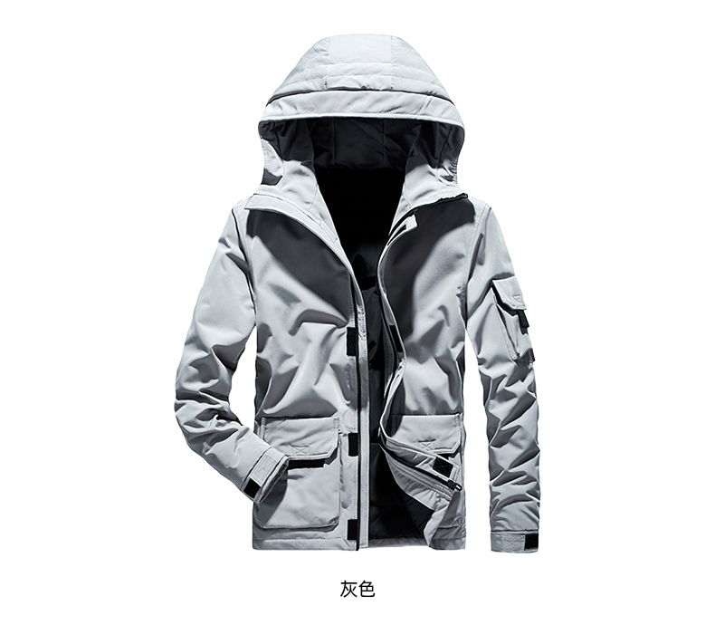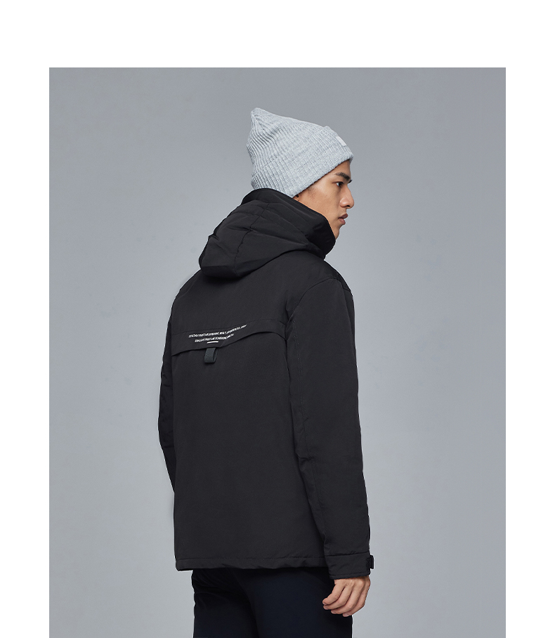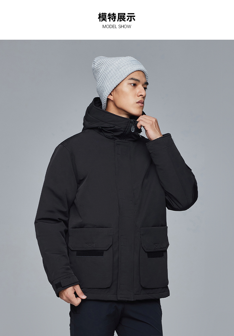 在款式和细节上,一体连帽设计,加宽加大的头盔式防雨帽,搭配半高领,能很好的防钻风。拉链+挡风的双重门襟,皮瓣口袋,可调节魔术贴袖口。