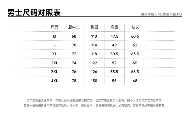 M码 96g、L码 103g、XL码 110g、XXL码 117g、XXXL码 124g、XXXXL码 131g