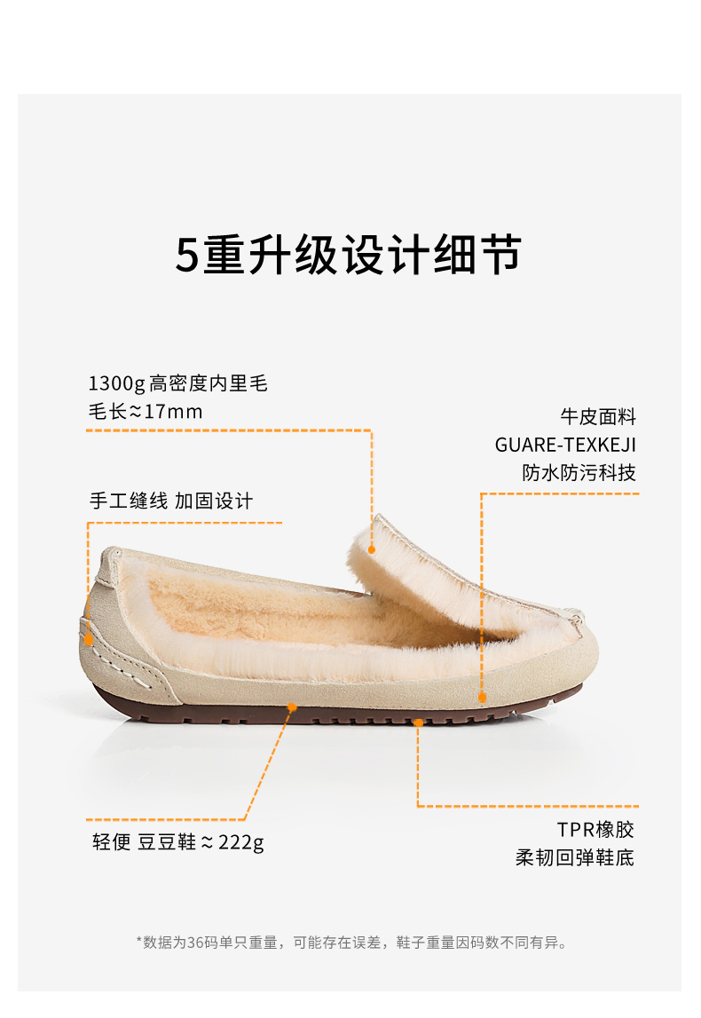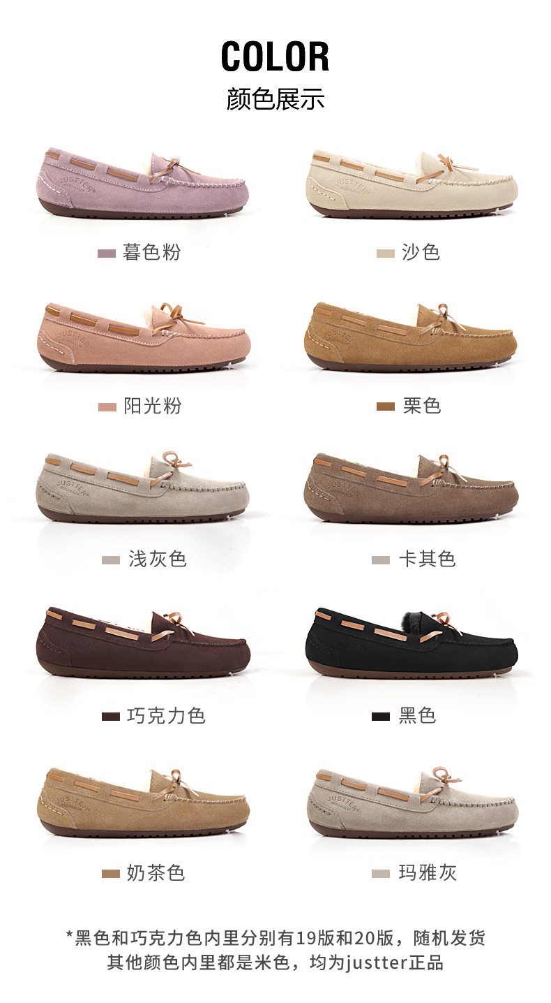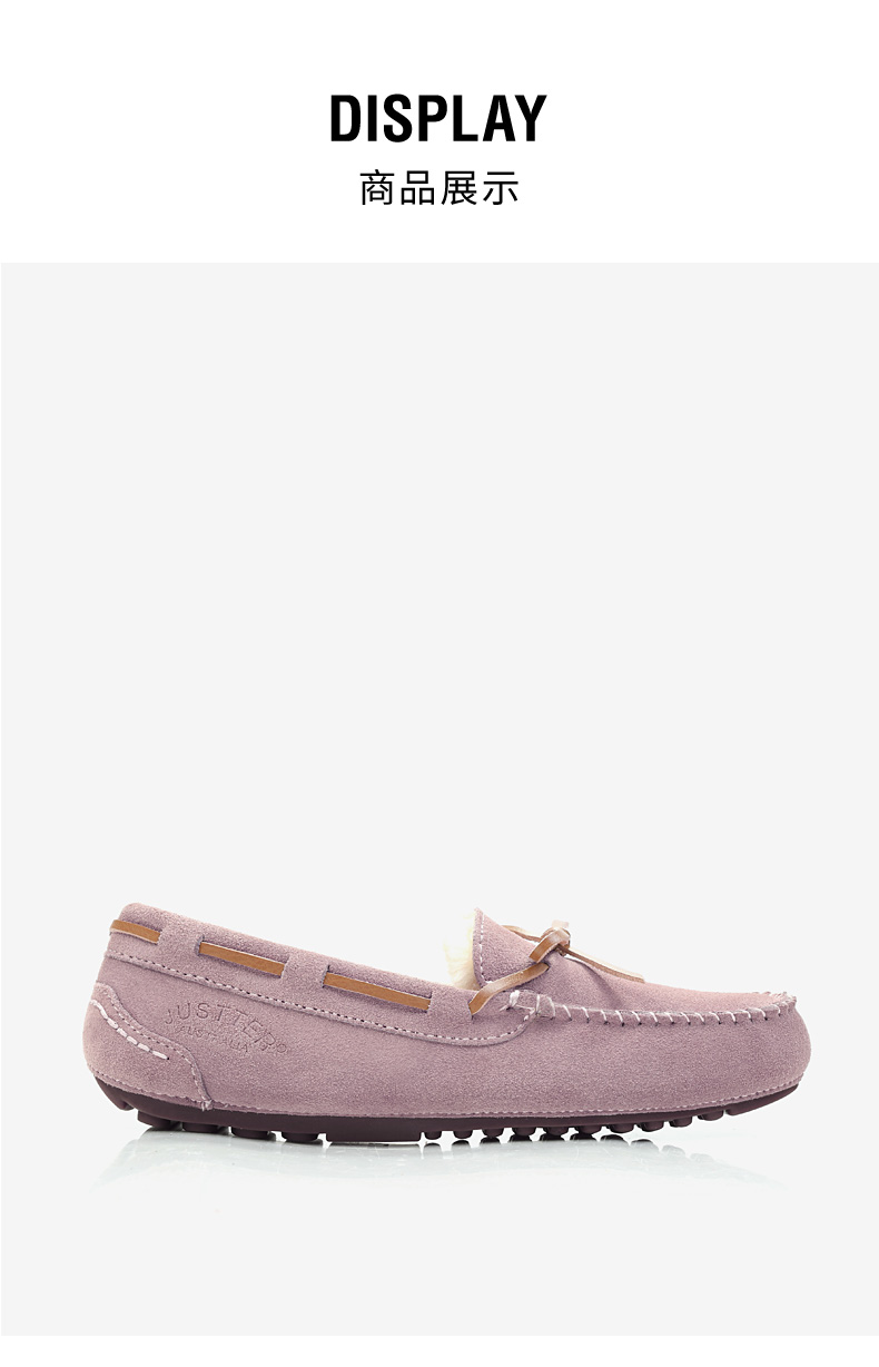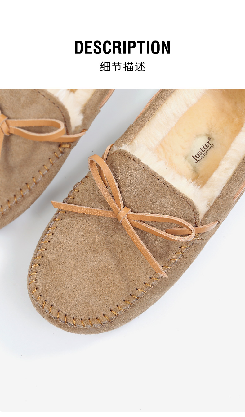 这款JUSTTER女保暖平底豆豆鞋,经典莫卡辛鞋的造型,鞋面使用整张小牛皮制成,搭配GUARE-TEXKEJI防水防污科技,摸起来非常柔软,同时耐穿易打理。