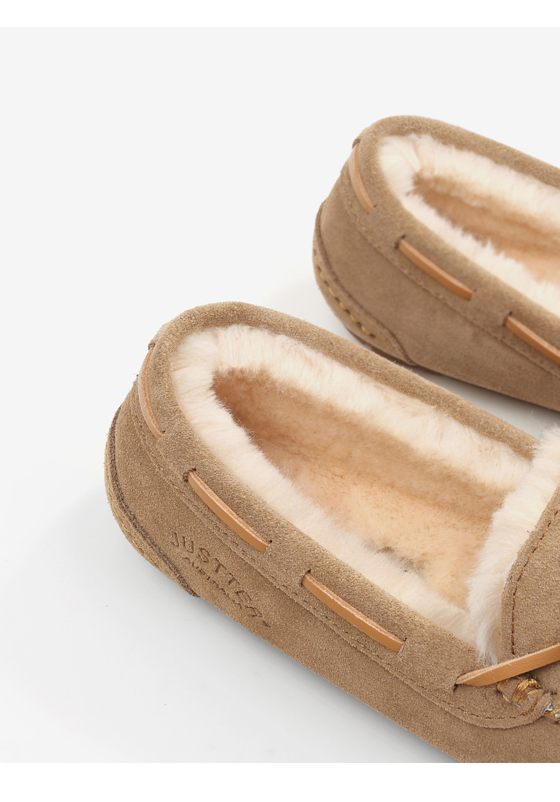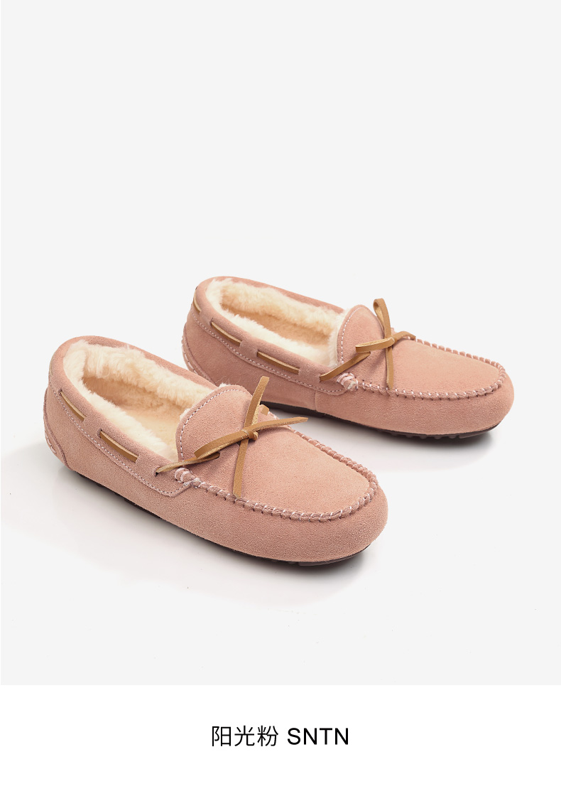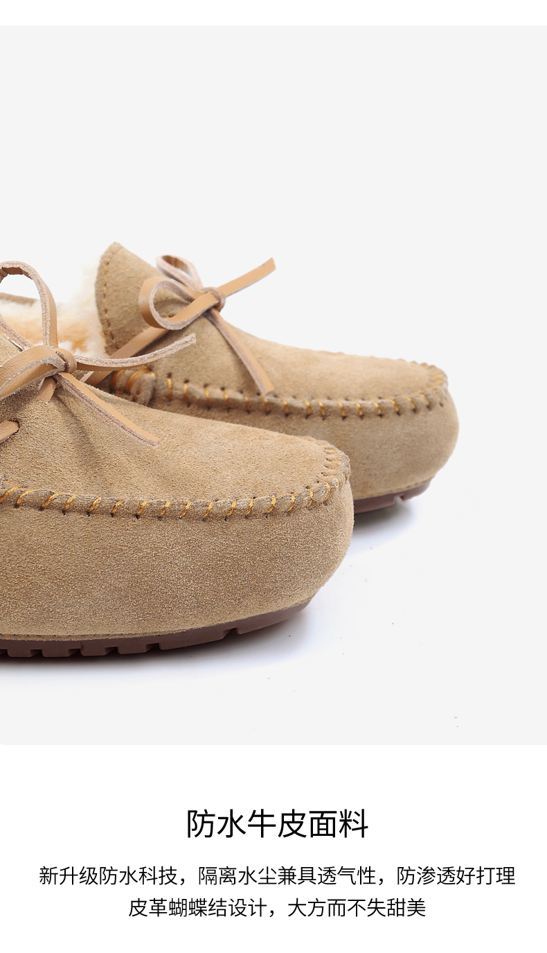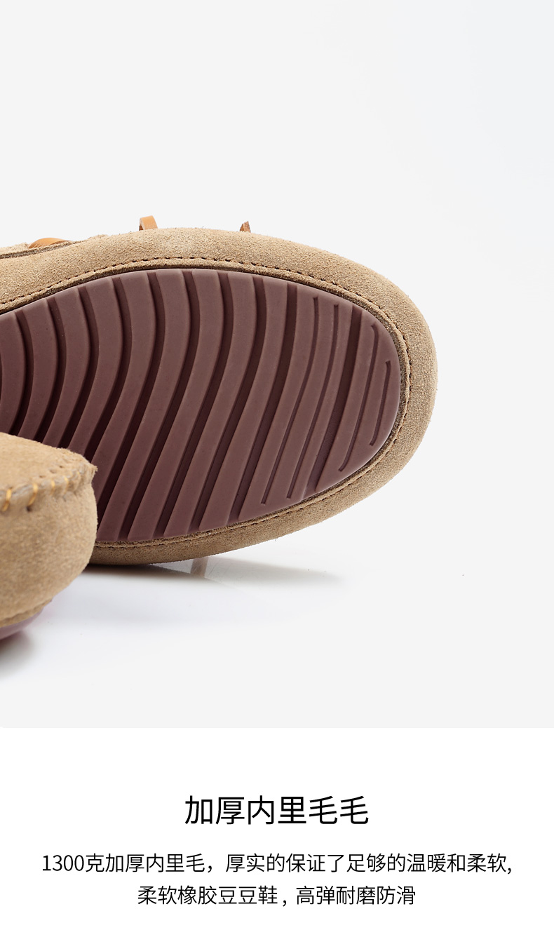 这款JUSTTER女保暖平底豆豆鞋,经典莫卡辛鞋的造型,鞋面使用整张小牛皮制成,搭配GUARE-TEXKEJI防水防污科技,摸起来非常柔软,同时耐穿易打理。