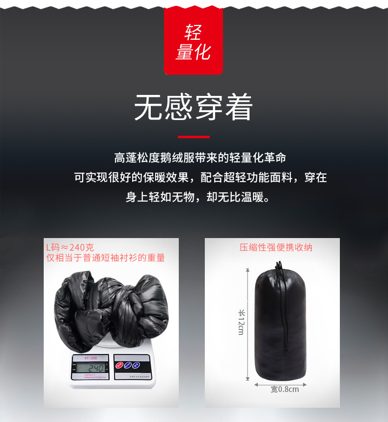「鹅绒」800蓬鹅绒成本约是普通鸭绒的10倍,没有鸭毛的腥味,保暖效果更好;「55克 800蓬鹅绒」≈「71克 700蓬普通鹅绒」≈「101克普通鸭绒」。