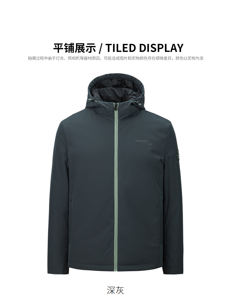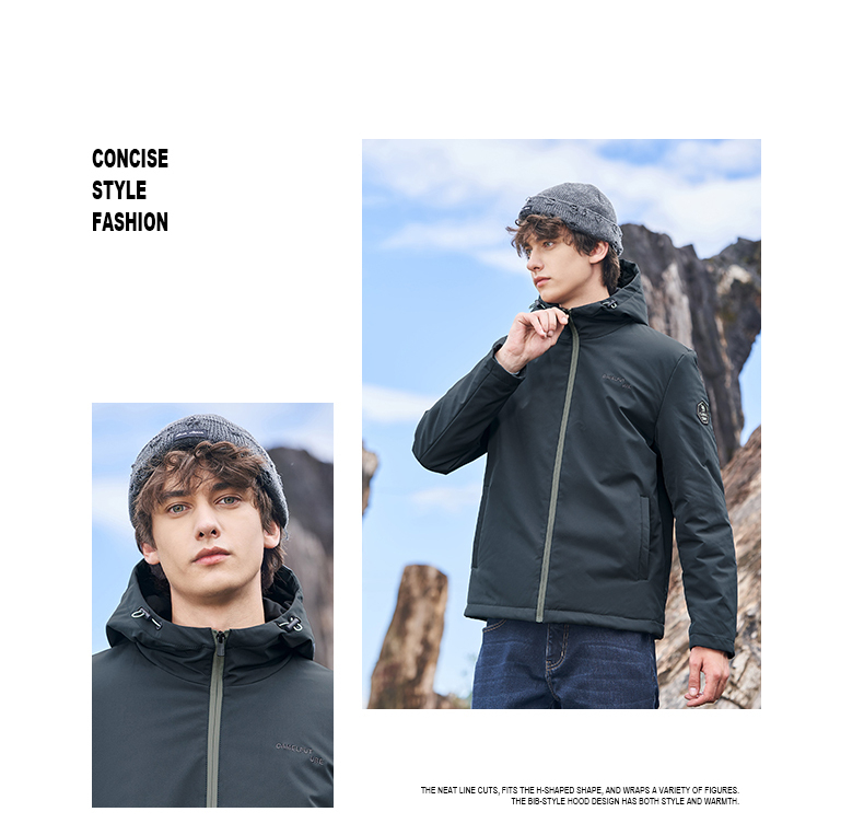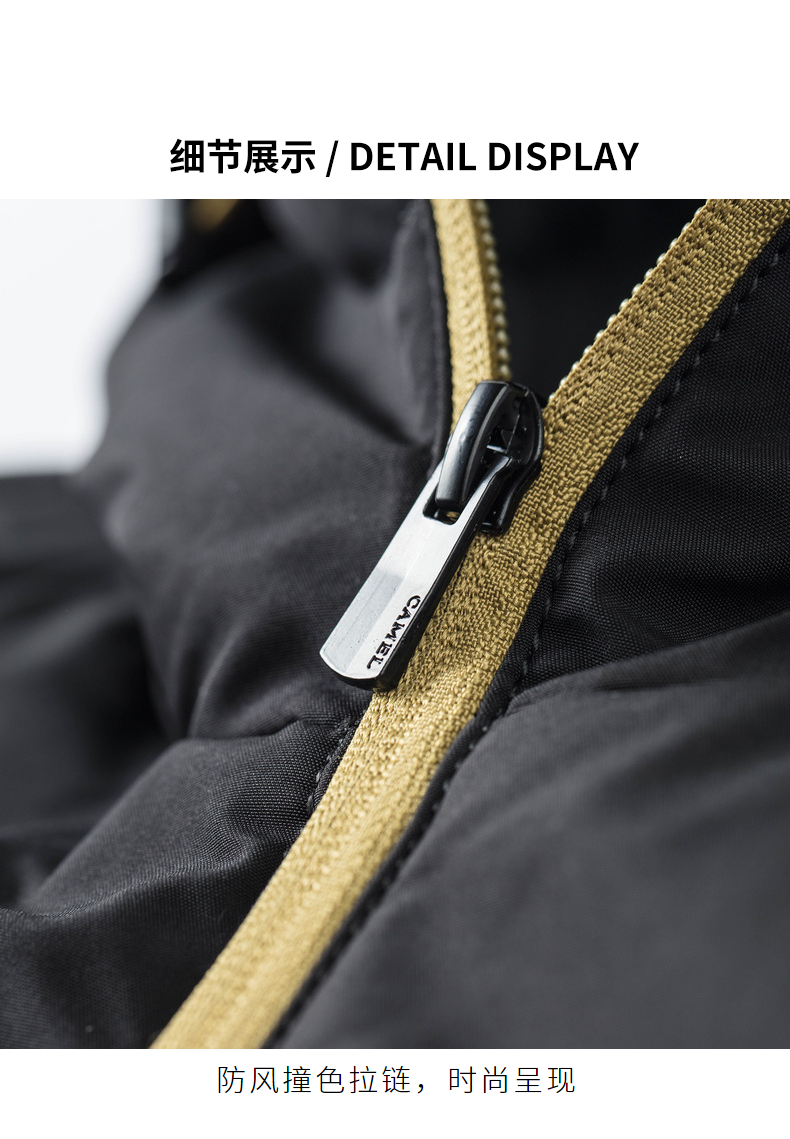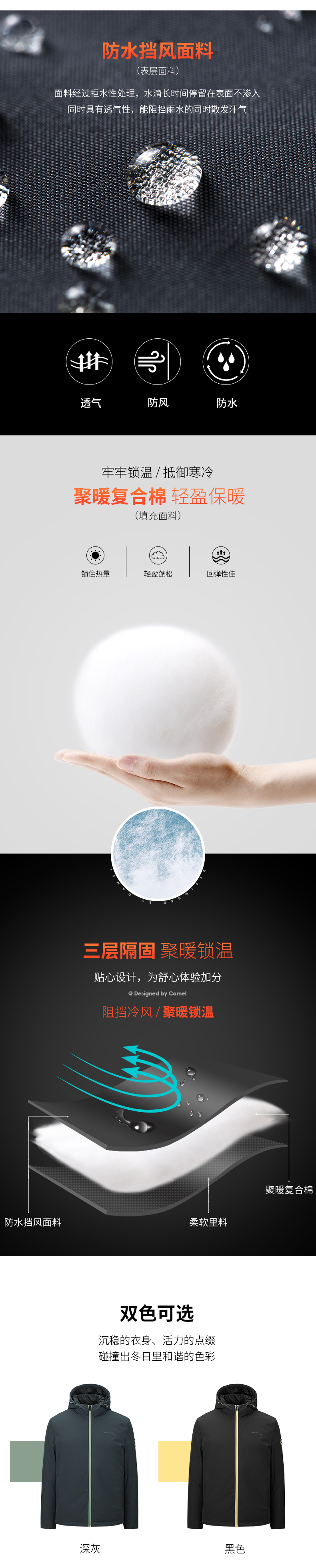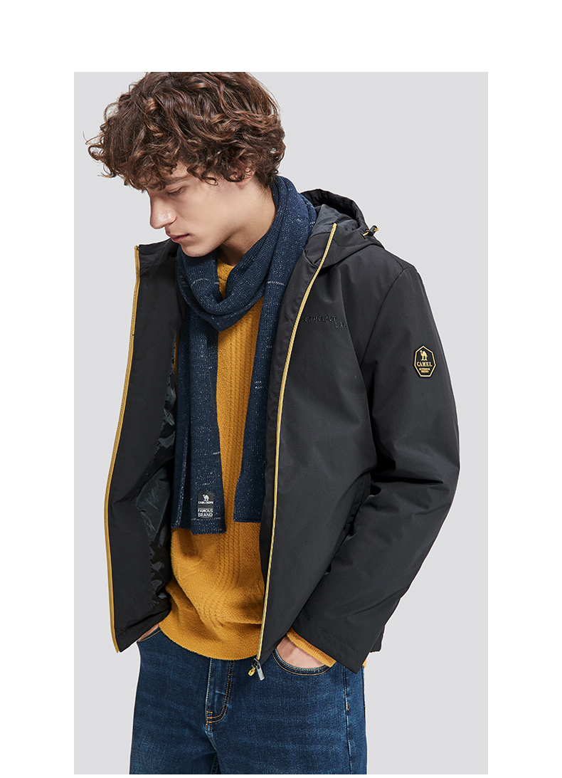 这款骆驼男子连帽棉服,衣身加厚夹棉设计,保暖御寒效果更好,科技面料注入新型复合防水涂层,具备优良防水透湿性,户外出行可应对多变风雨天气,无惧严寒侵袭。立体剪裁穿着贴身舒适,侧臂品牌臂章,彰显大牌品质,时尚撞色,穿着百搭。