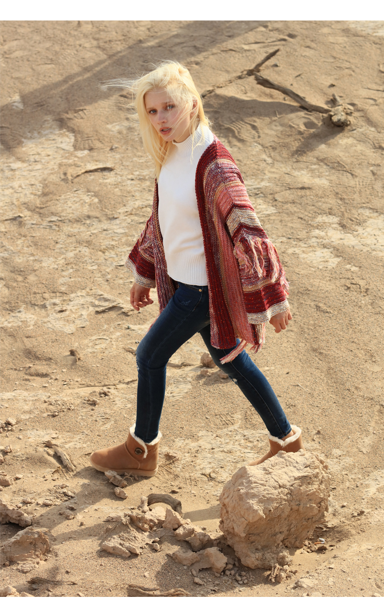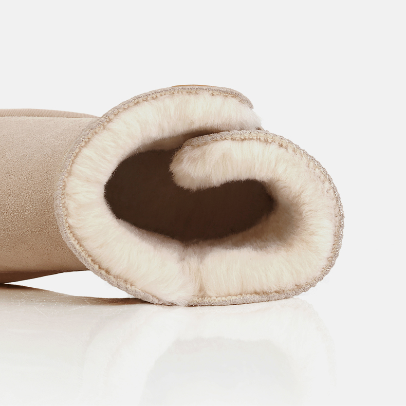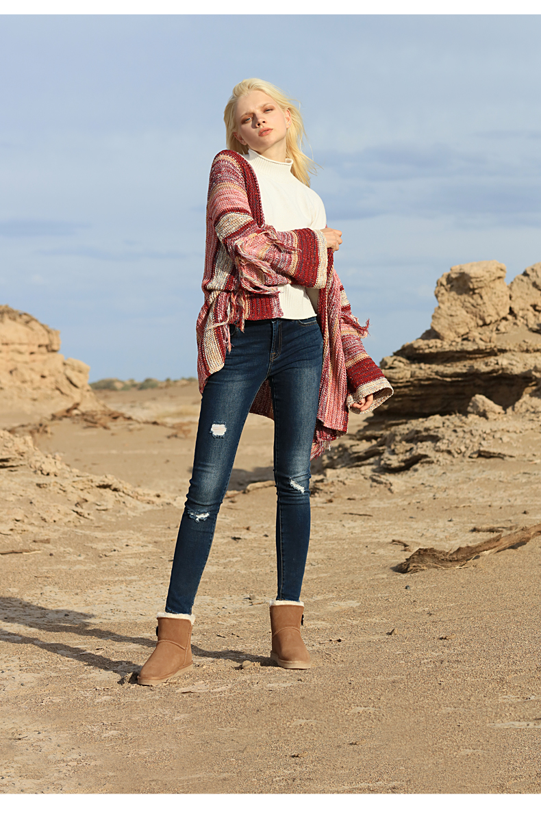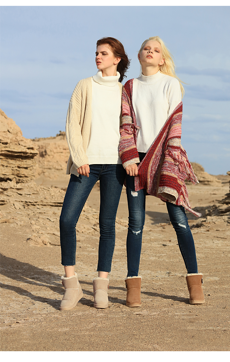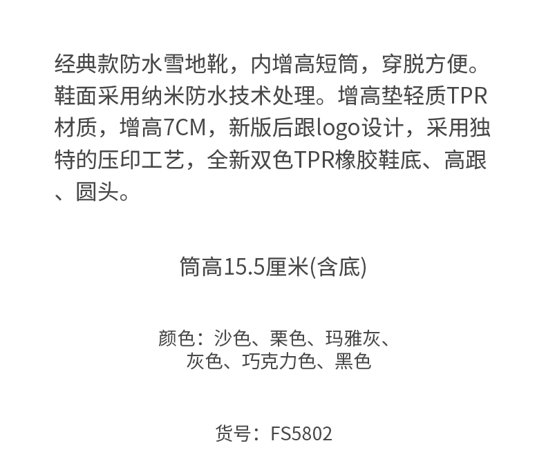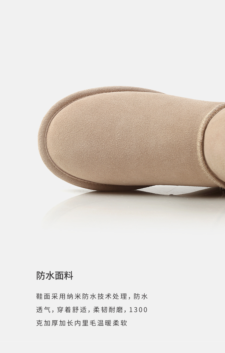 这款JUSTTER女内增高雪地靴,是2021年的新品,经典雪地靴造型,鞋面是用牛反绒皮制成的,同时运用纳米防水技术处理,无惧泼水,雨天也能照穿。内里是1300g加厚加长针织绒毛,柔软保暖。