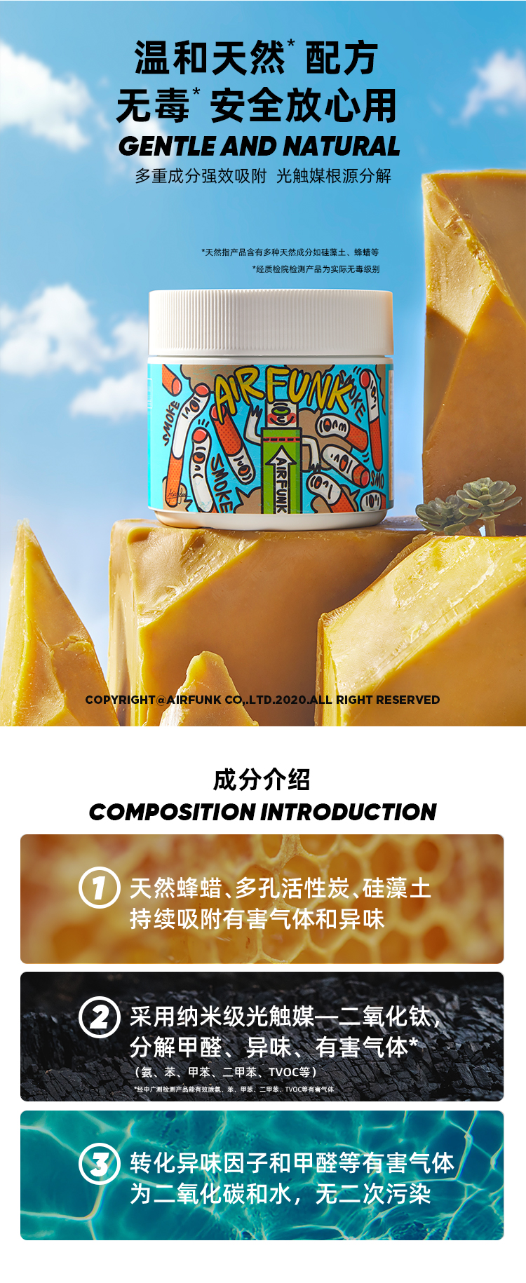天猫airfunk旗舰店158元,可领60元优惠券(限今天),实付98元到手,历史新低价,直降30元,规格是350g*3罐。一般一个房间放1盒。除醛率97.1% 天然配方母婴适用。