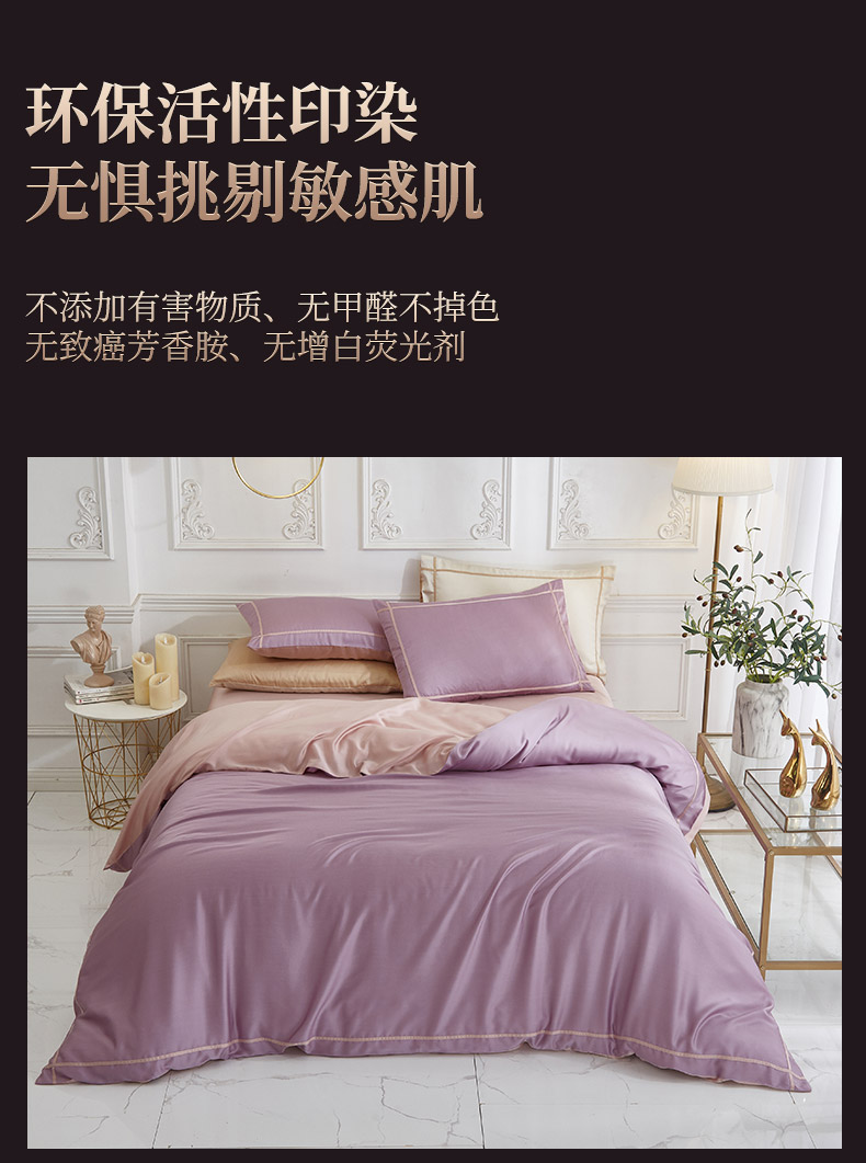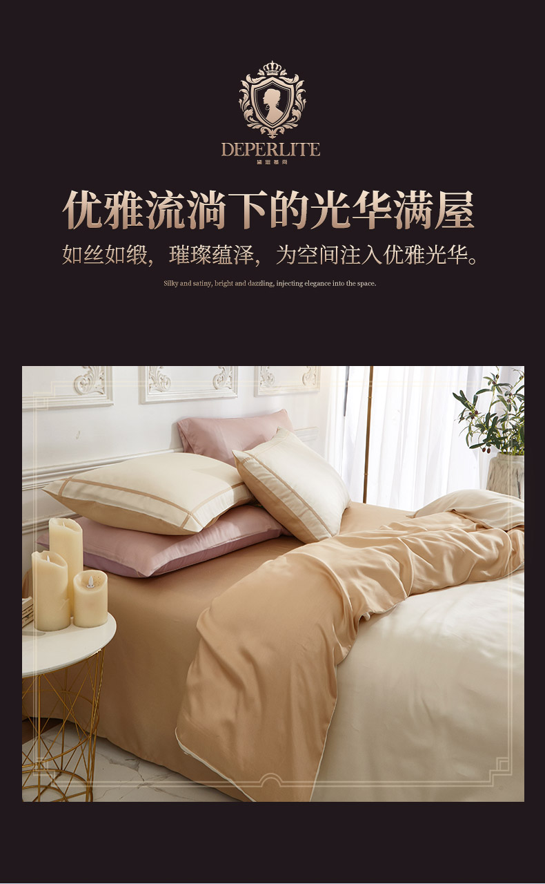 材质甄选比纯棉更高品质的法国天丝棉,双股100S面料具有强柔滑感,触感颇为舒适,具有普通面料不具备的良好光泽度,比棉更高的优异透气吸湿特性,自带排汗属性,仲夏清凉不燥。采用更复杂的缎纹工艺织造,相较于平纹与斜纹纺织,面料光滑有质感,质地更加轻柔贴肤。给您优质的睡眠体验,贴近自然的舒适感。